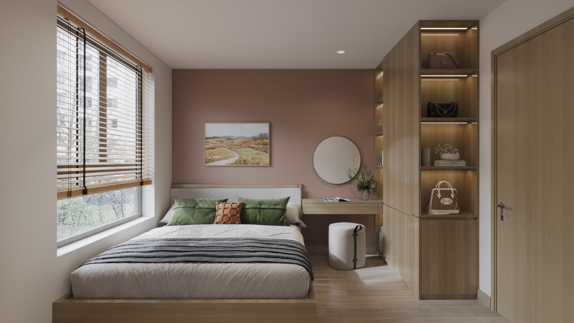 Căn hộ được thiết kế theo phong cách tối giản, nổi bật với gam màu trung tính nhẹ nhàng, đường nét gọn gàng và bố cục hài hòa. Nội thất tinh giản nhưng tiện nghi, kết hợp ánh sáng tự nhiên và vài điểm nhấn trang trí tinh tế, mang lại không gian sống thanh lịch, ấm cúng và thoáng đãng