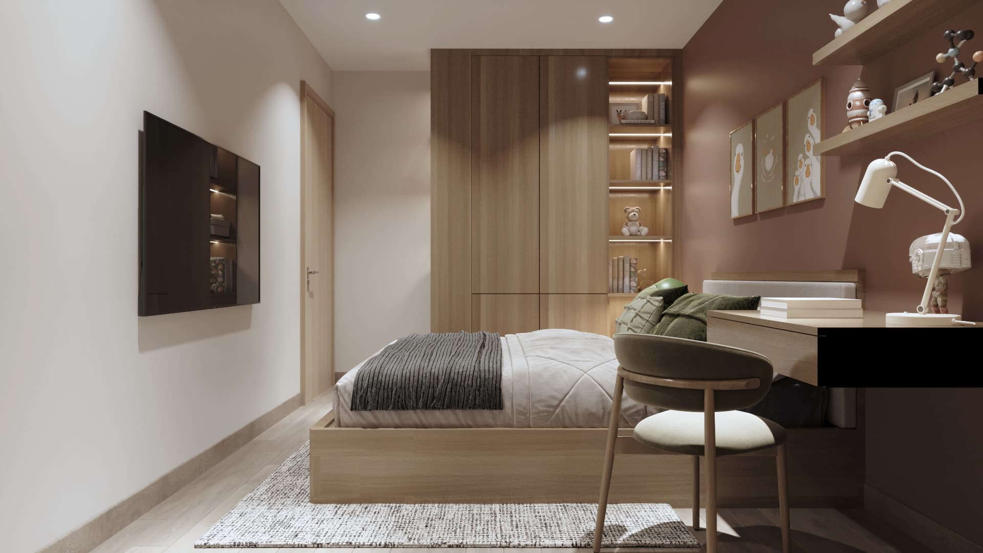 Căn hộ được thiết kế theo phong cách tối giản, nổi bật với gam màu trung tính nhẹ nhàng, đường nét gọn gàng và bố cục hài hòa. Nội thất tinh giản nhưng tiện nghi, kết hợp ánh sáng tự nhiên và vài điểm nhấn trang trí tinh tế, mang lại không gian sống thanh lịch, ấm cúng và thoáng đãng