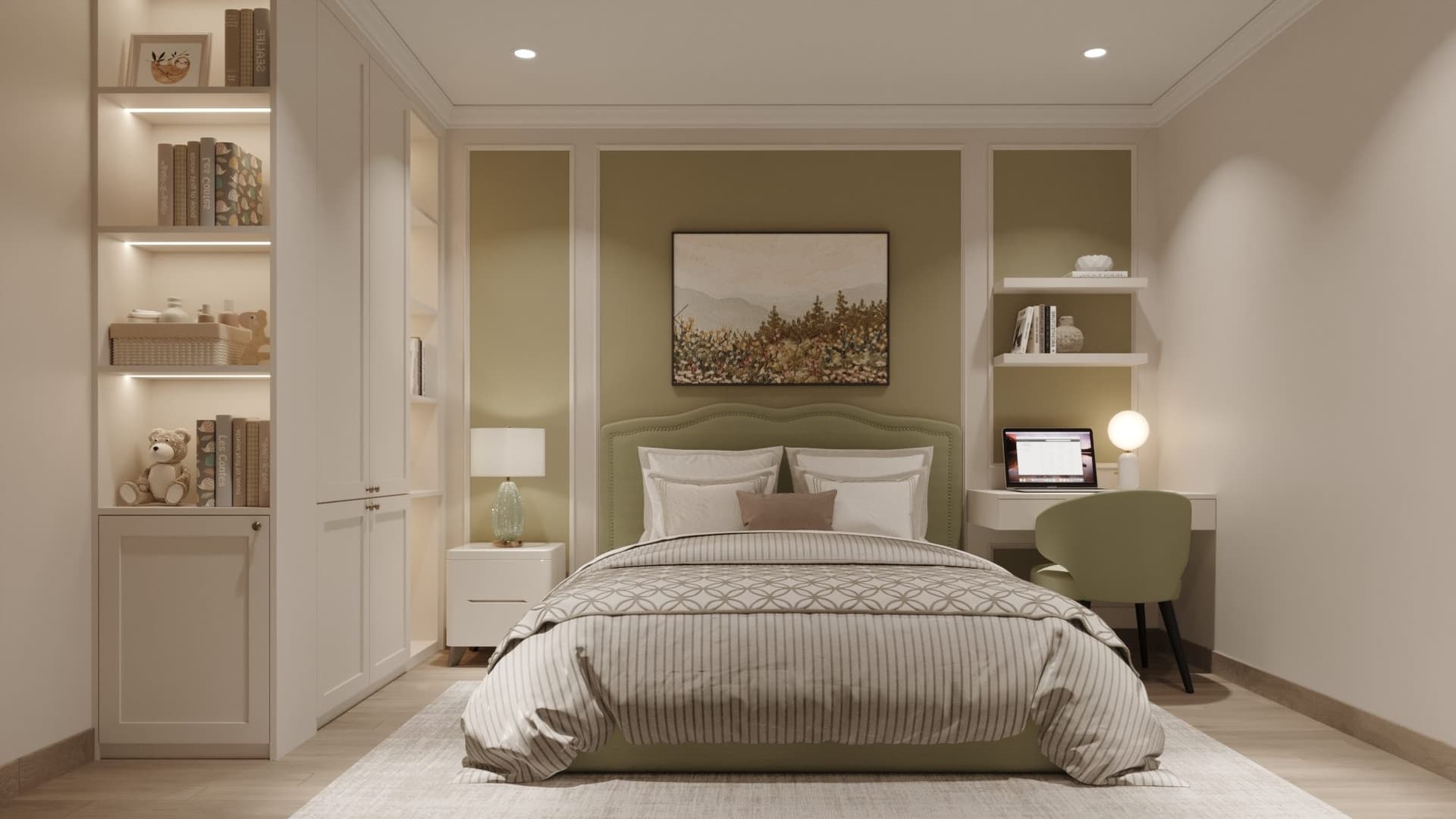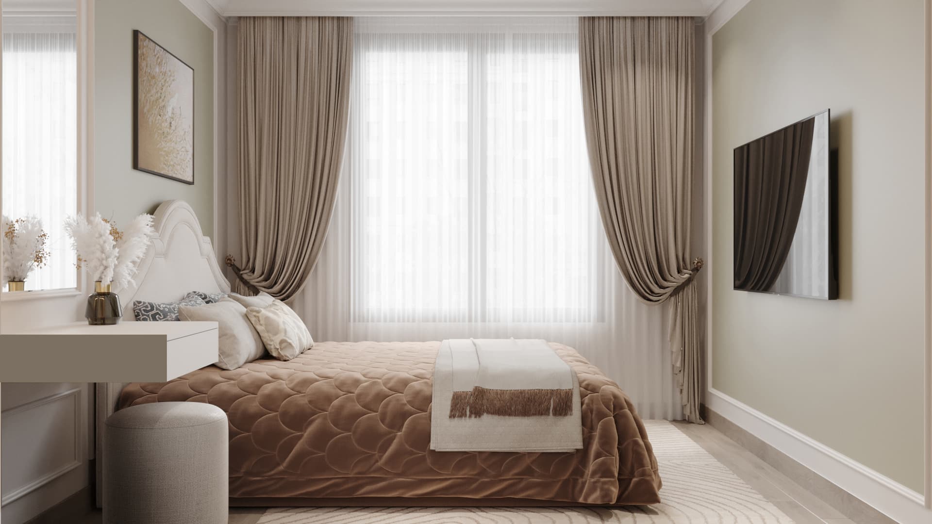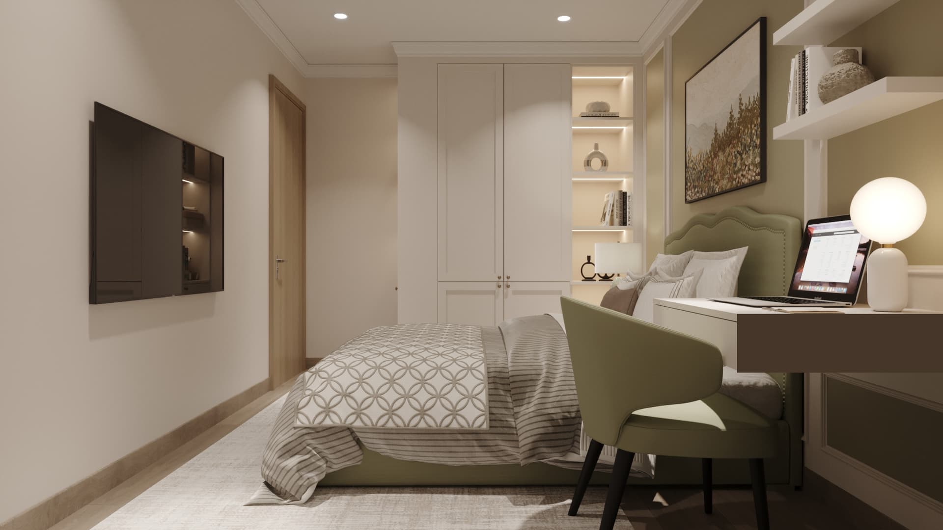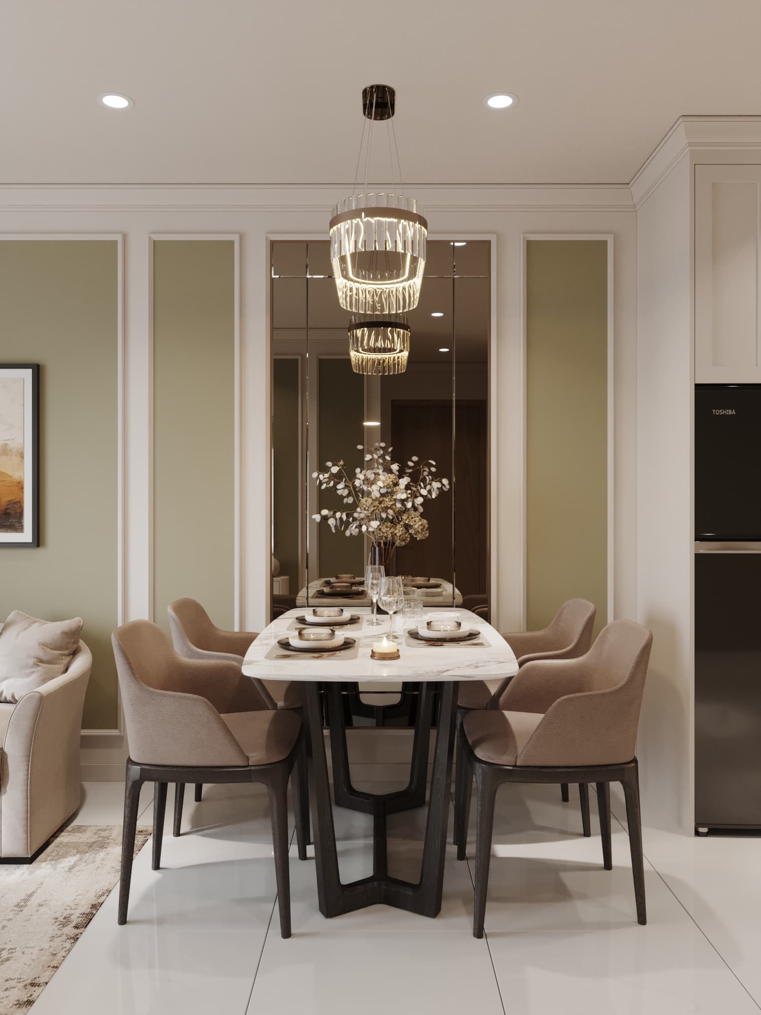 Căn hộ mang phong cách tân cổ điển, nổi bật với gam màu trung tính sang trọng, phào chỉ tinh tế và nội thất hiện đại pha chút cổ điển. Sự kết hợp hài hòa giữa đường nét mềm mại, ánh sáng ấm áp và chất liệu cao cấp tạo nên không gian sống thanh lịch, tinh tế và đầy cuốn hút