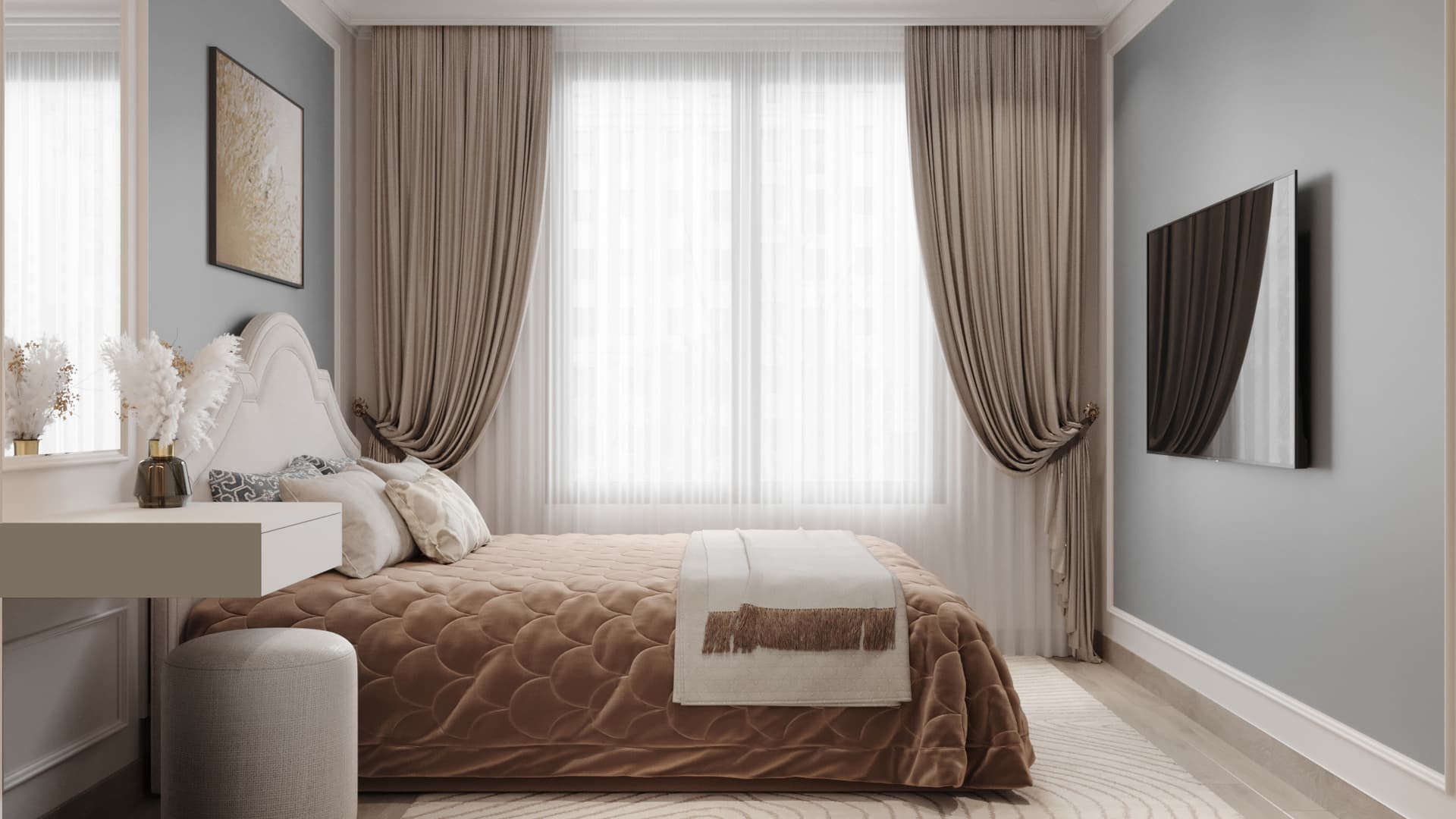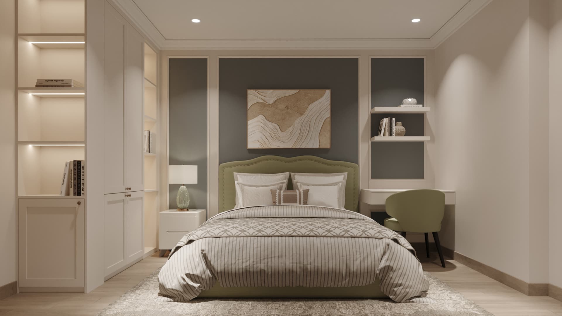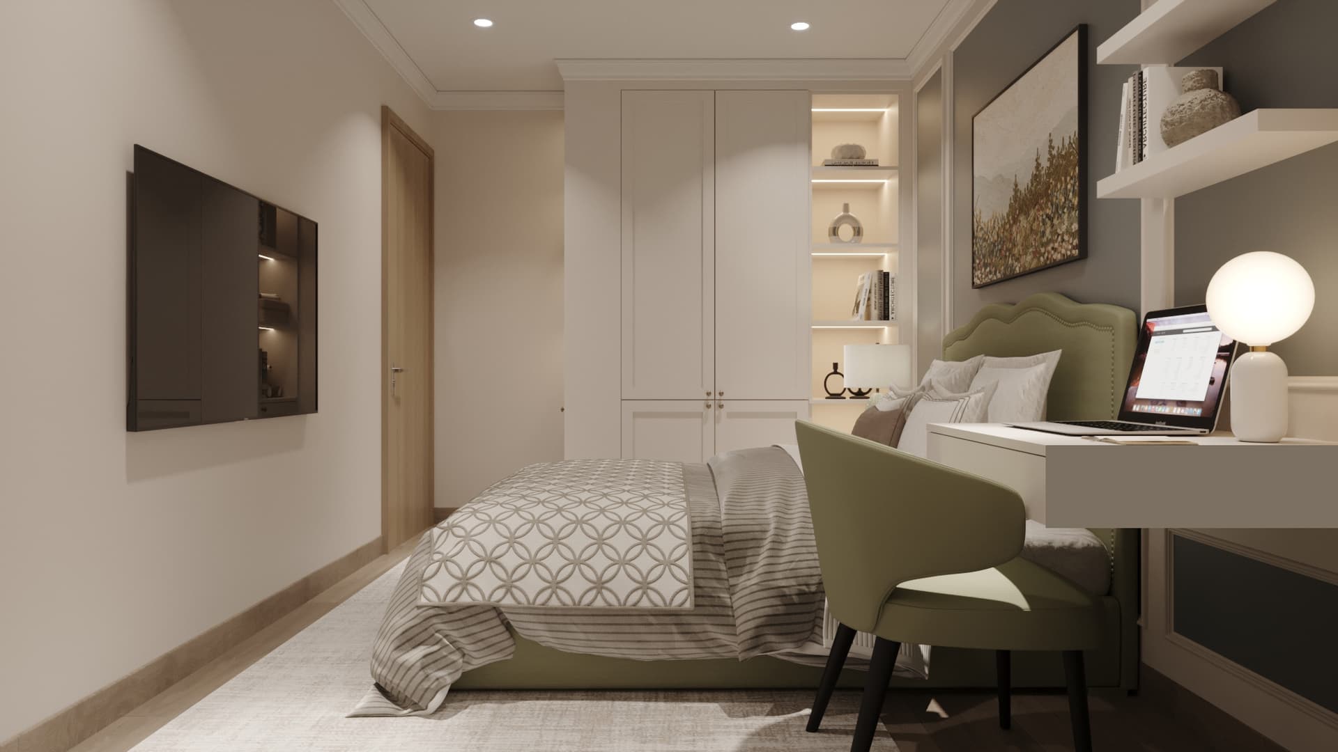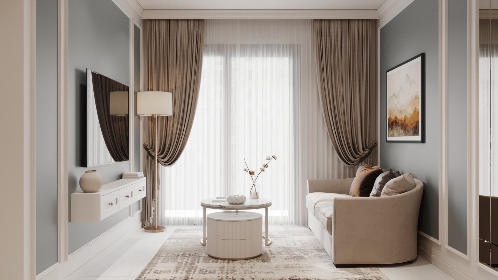 Căn hộ mang phong cách tân cổ điển, nổi bật với gam màu trung tính sang trọng, phào chỉ tinh tế và nội thất hiện đại pha chút cổ điển. Sự kết hợp hài hòa giữa đường nét mềm mại, ánh sáng ấm áp và chất liệu cao cấp tạo nên không gian sống thanh lịch, tinh tế và đầy cuốn hút