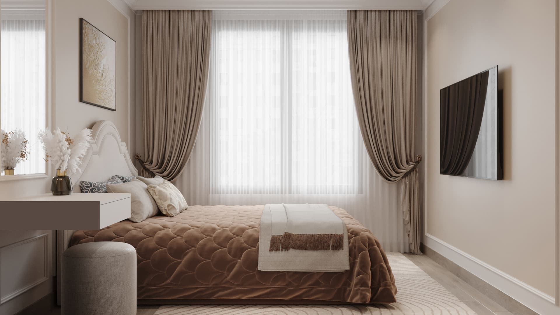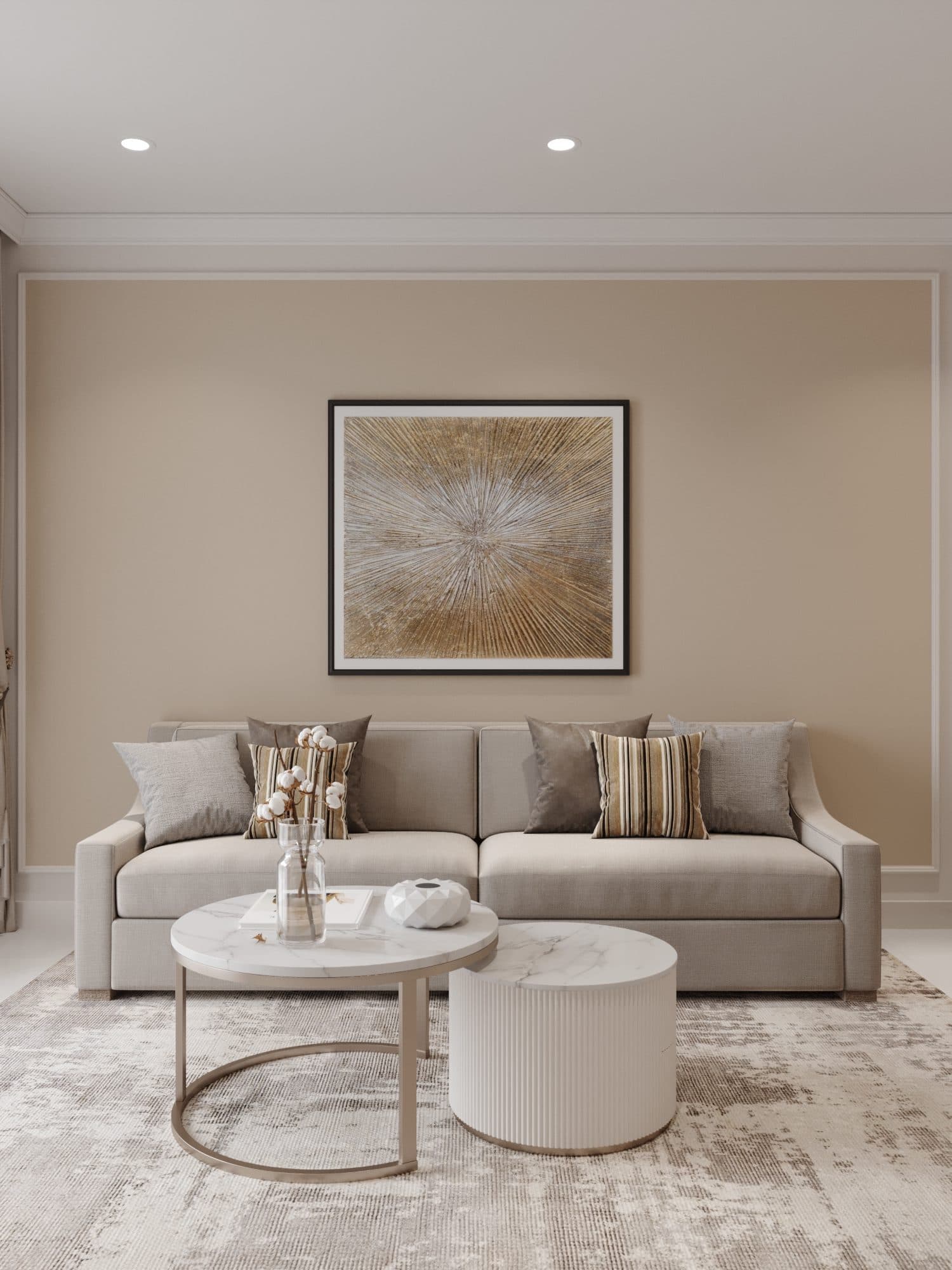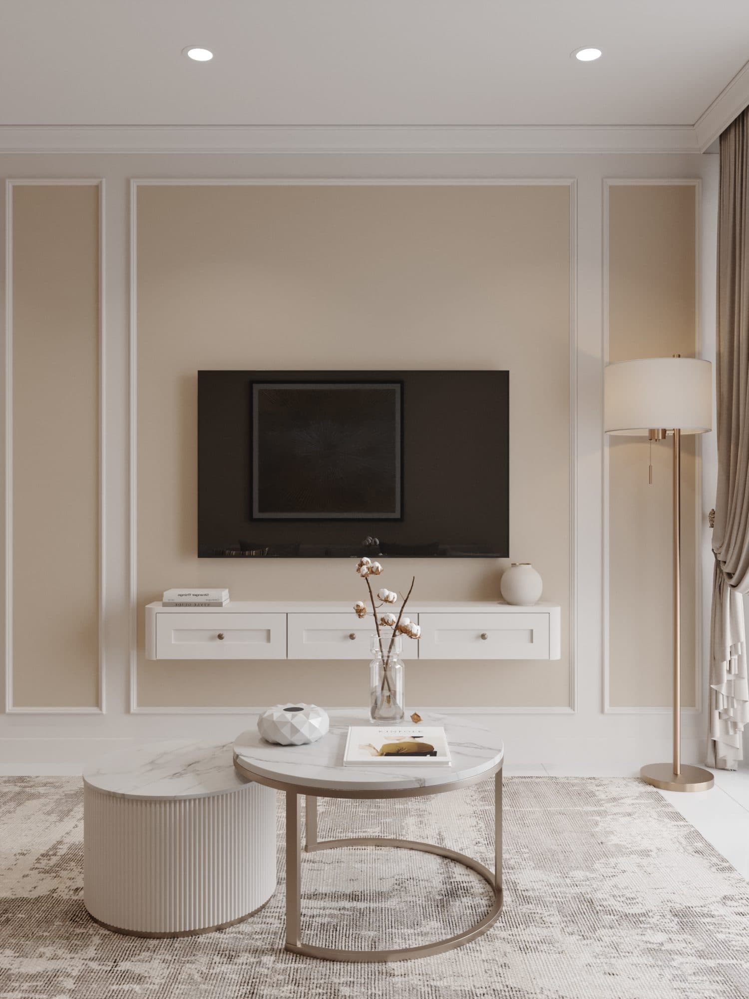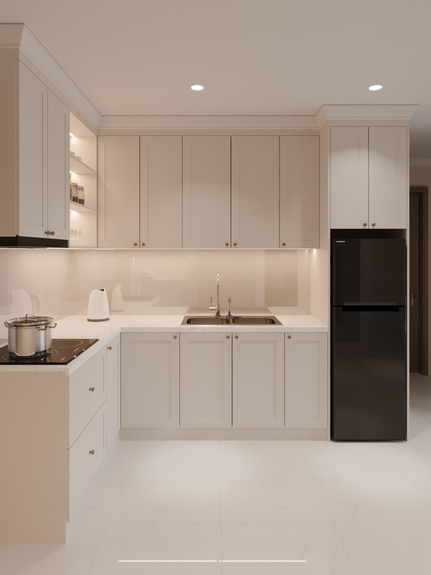 Căn hộ mang phong cách tân cổ điển, nổi bật với gam màu trung tính sang trọng, phào chỉ tinh tế và nội thất hiện đại pha chút cổ điển. Sự kết hợp hài hòa giữa đường nét mềm mại, ánh sáng ấm áp và chất liệu cao cấp tạo nên không gian sống thanh lịch, tinh tế và đầy cuốn hút