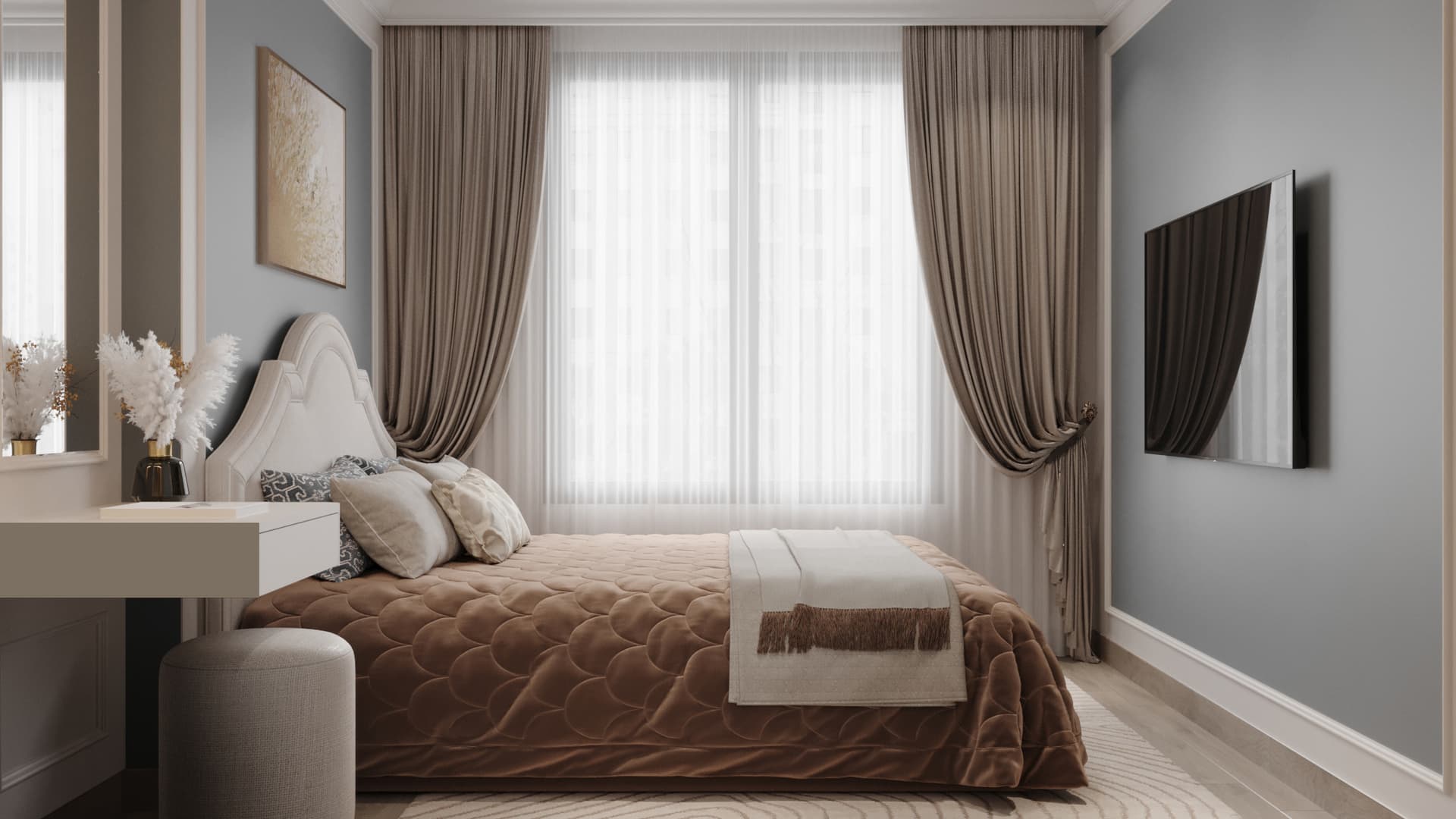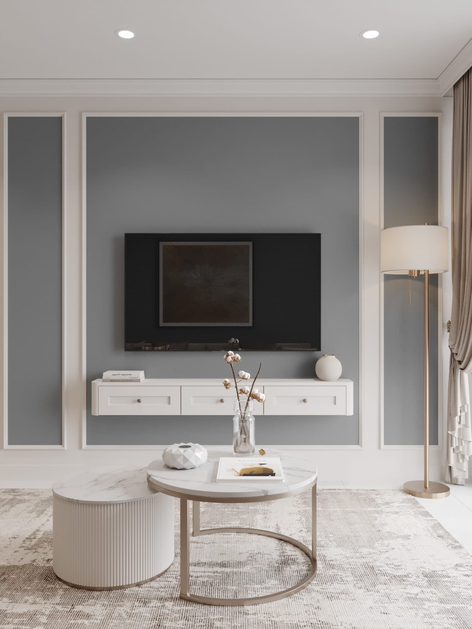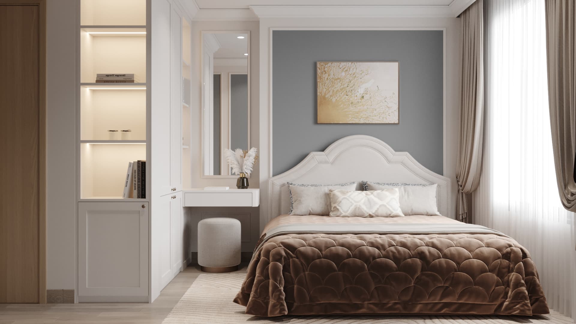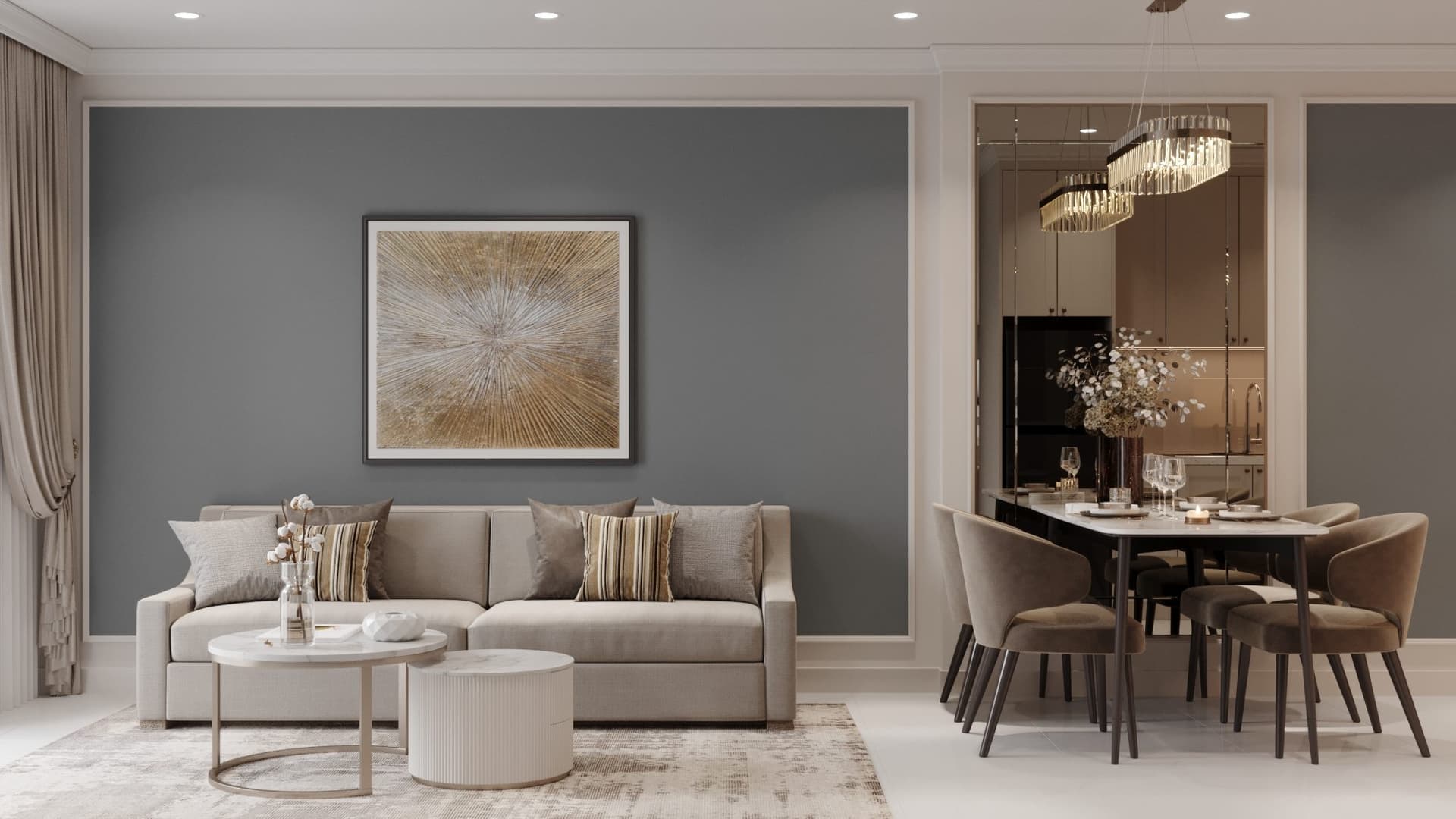 Căn hộ mang phong cách tân cổ điển, nổi bật với gam màu trung tính sang trọng, phào chỉ tinh tế và nội thất hiện đại pha chút cổ điển. Sự kết hợp hài hòa giữa đường nét mềm mại, ánh sáng ấm áp và chất liệu cao cấp tạo nên không gian sống thanh lịch, tinh tế và đầy cuốn hút