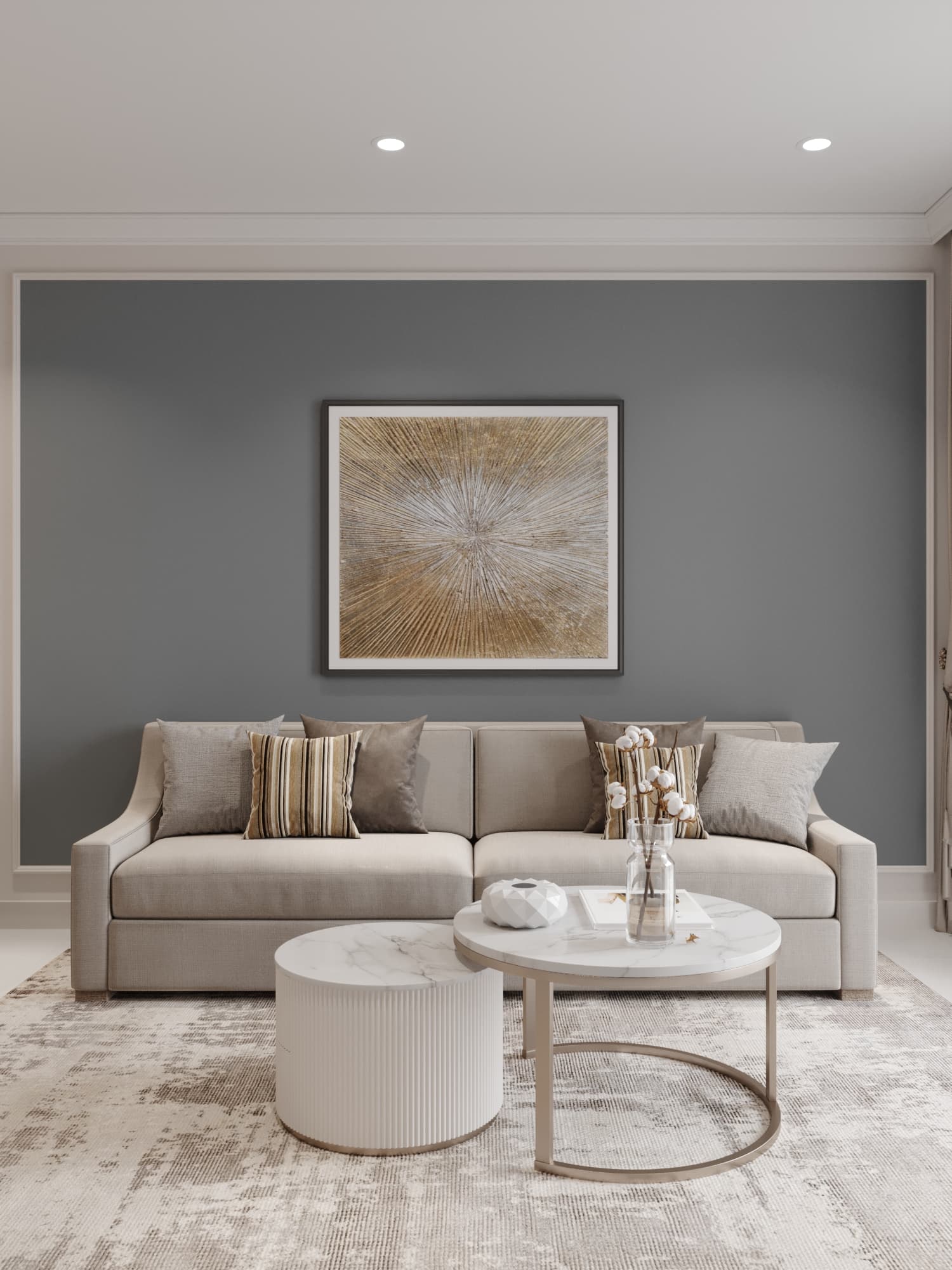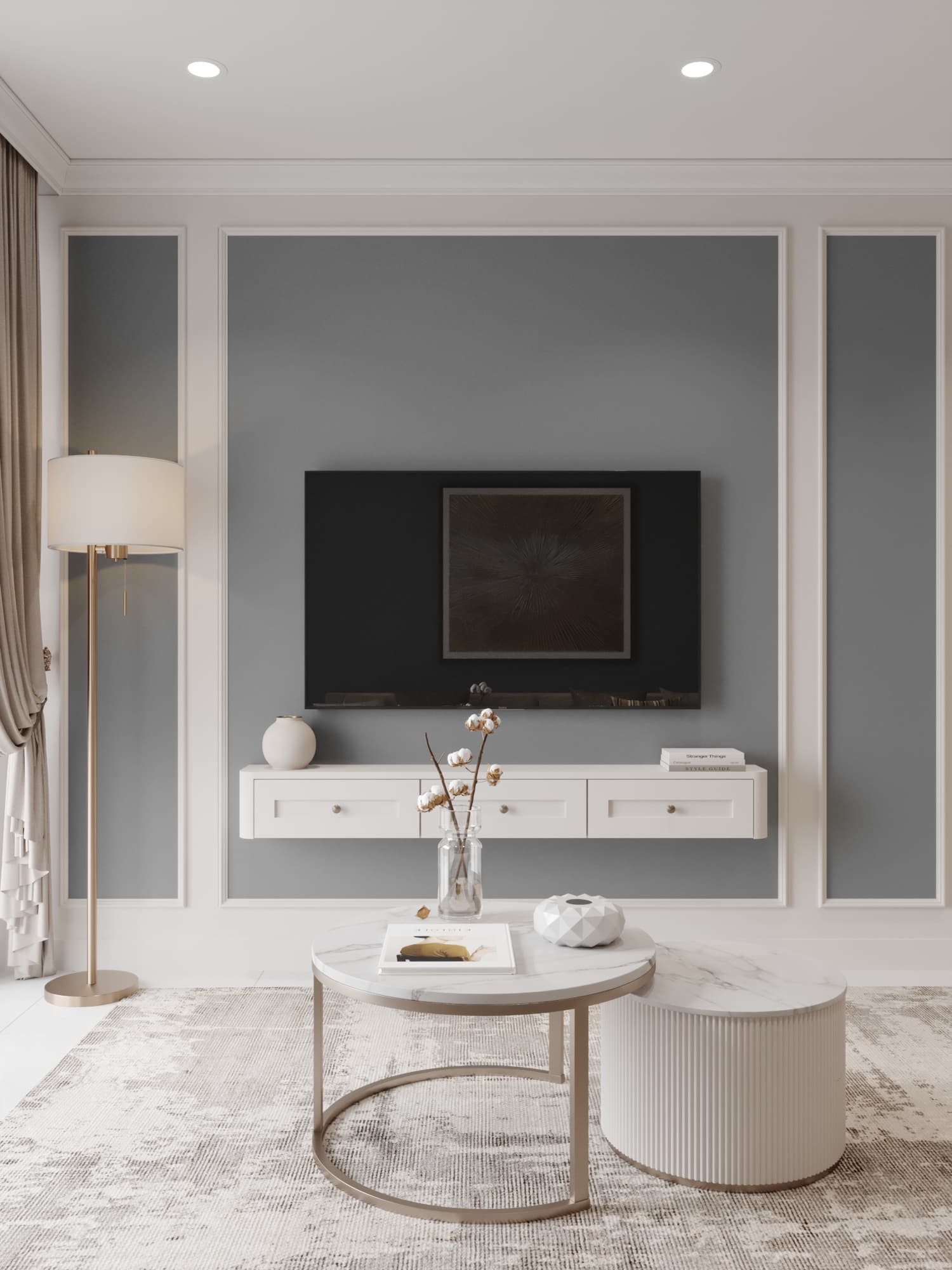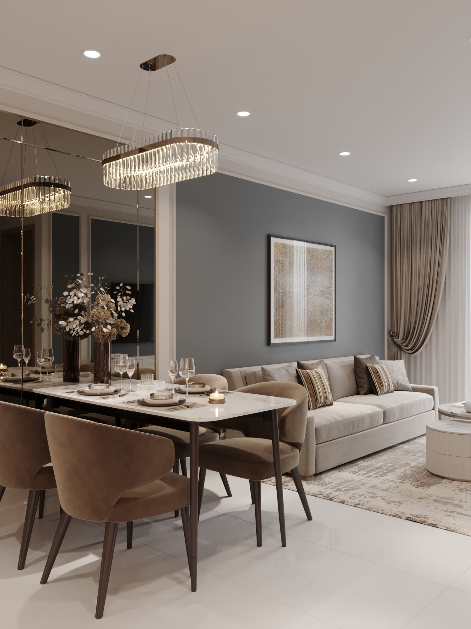 Căn hộ mang phong cách tân cổ điển, nổi bật với gam màu trung tính sang trọng, phào chỉ tinh tế và nội thất hiện đại pha chút cổ điển. Sự kết hợp hài hòa giữa đường nét mềm mại, ánh sáng ấm áp và chất liệu cao cấp tạo nên không gian sống thanh lịch, tinh tế và đầy cuốn hút