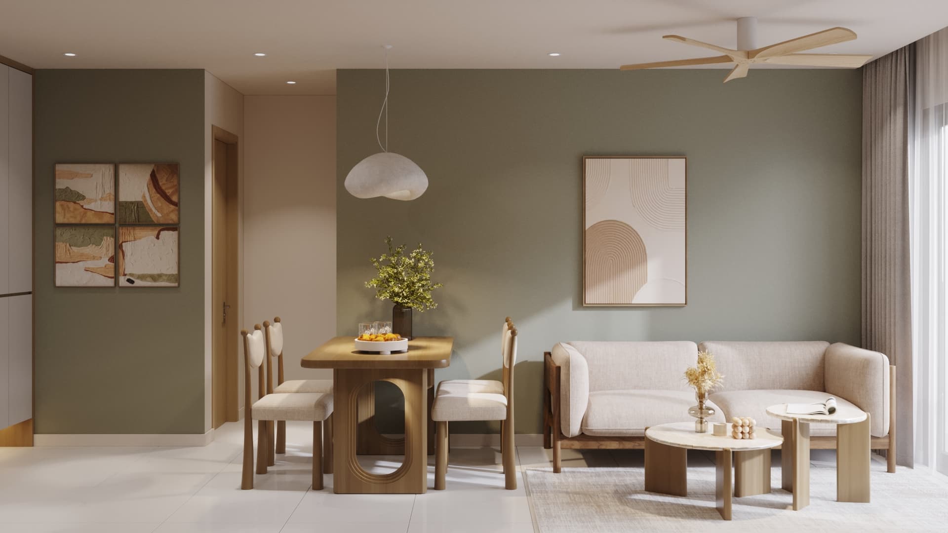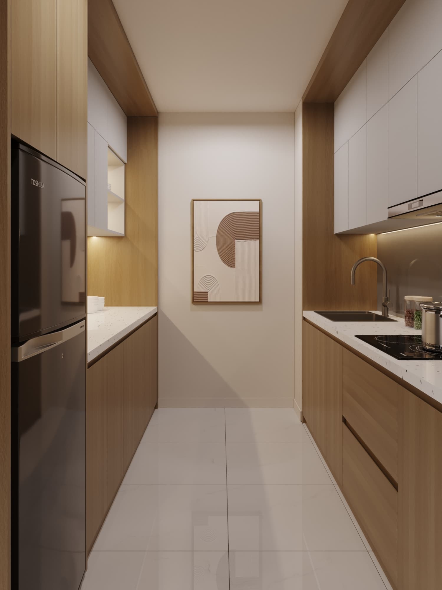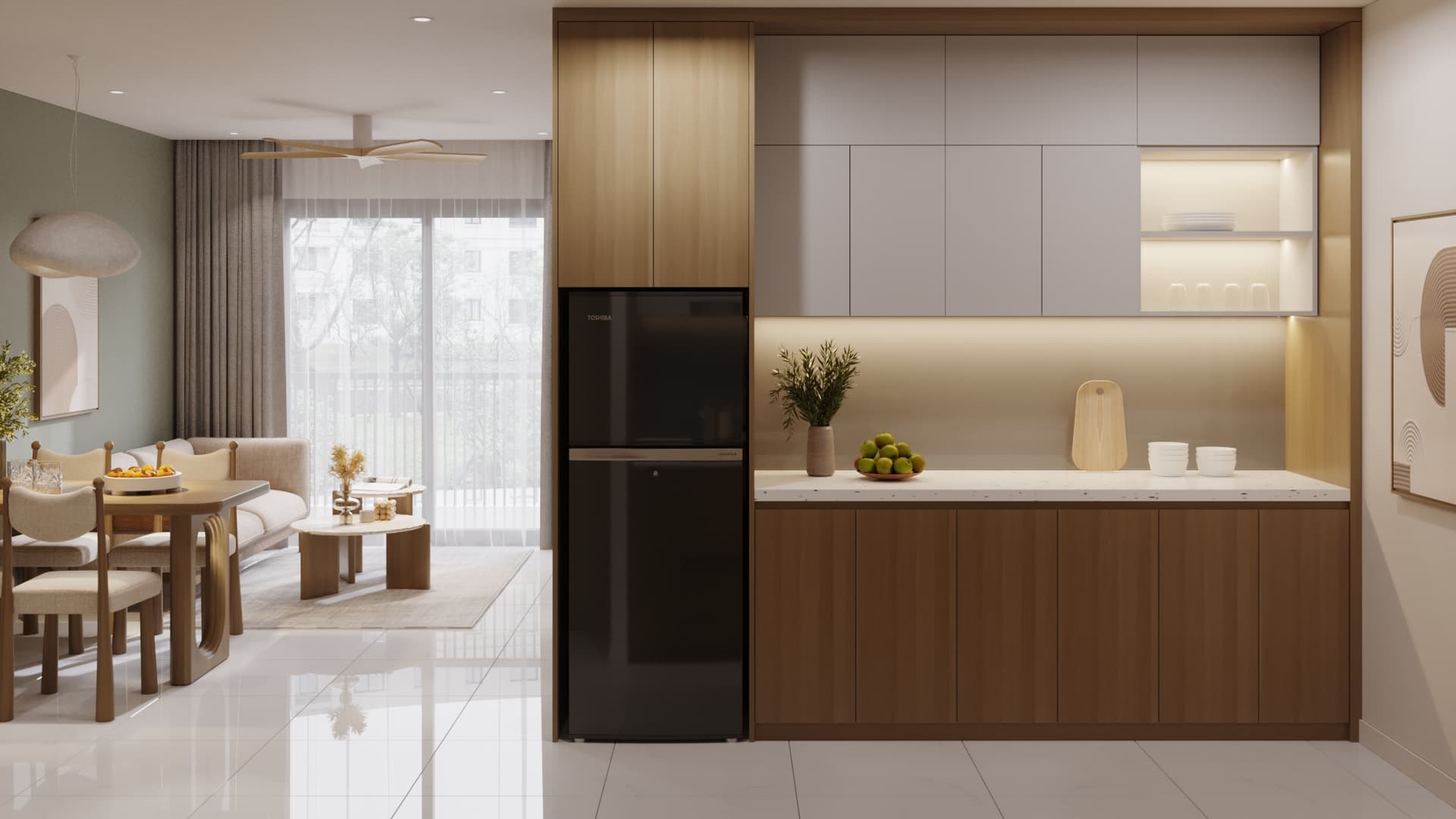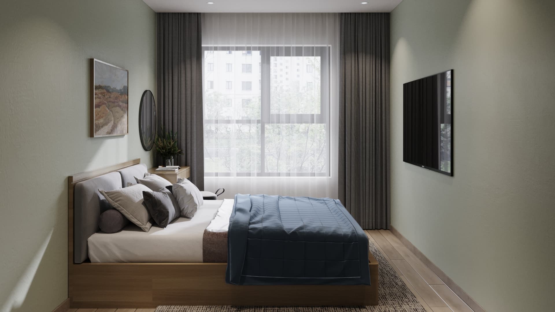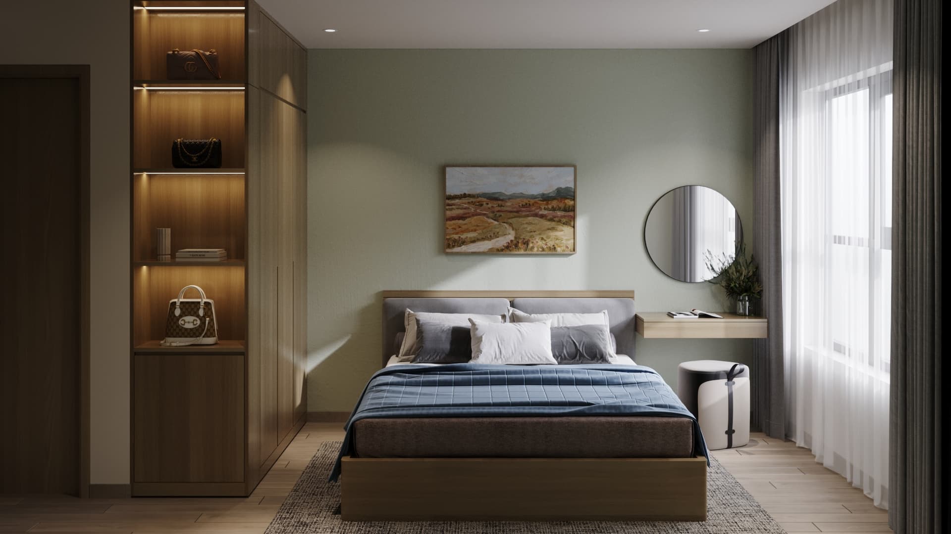 Căn hộ được thiết kế theo phong cách tối giản, nổi bật với gam màu trung tính nhẹ nhàng, đường nét gọn gàng và bố cục hài hòa. Nội thất tinh giản nhưng tiện nghi, kết hợp ánh sáng tự nhiên và vài điểm nhấn trang trí tinh tế, mang lại không gian sống thanh lịch, ấm cúng và thoáng đãng