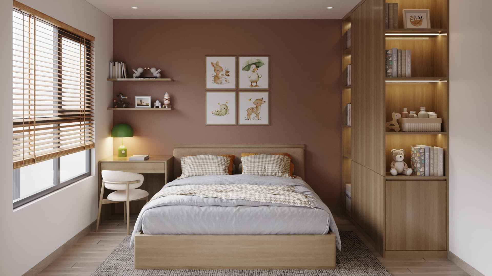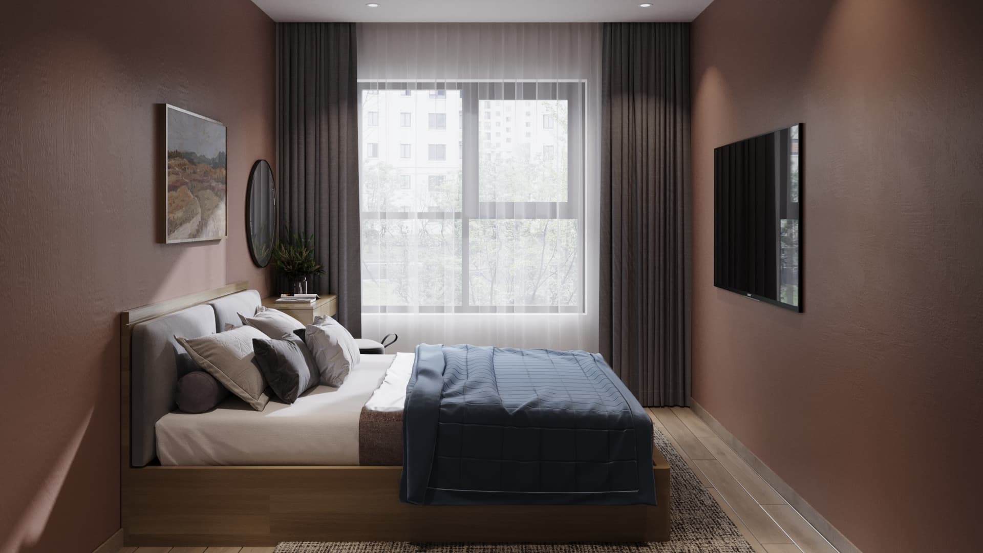 Căn hộ được thiết kế theo phong cách tối giản, nổi bật với gam màu trung tính nhẹ nhàng, đường nét gọn gàng và bố cục hài hòa. Nội thất tinh giản nhưng tiện nghi, kết hợp ánh sáng tự nhiên và vài điểm nhấn trang trí tinh tế, mang lại không gian sống thanh lịch, ấm cúng và thoáng đãng