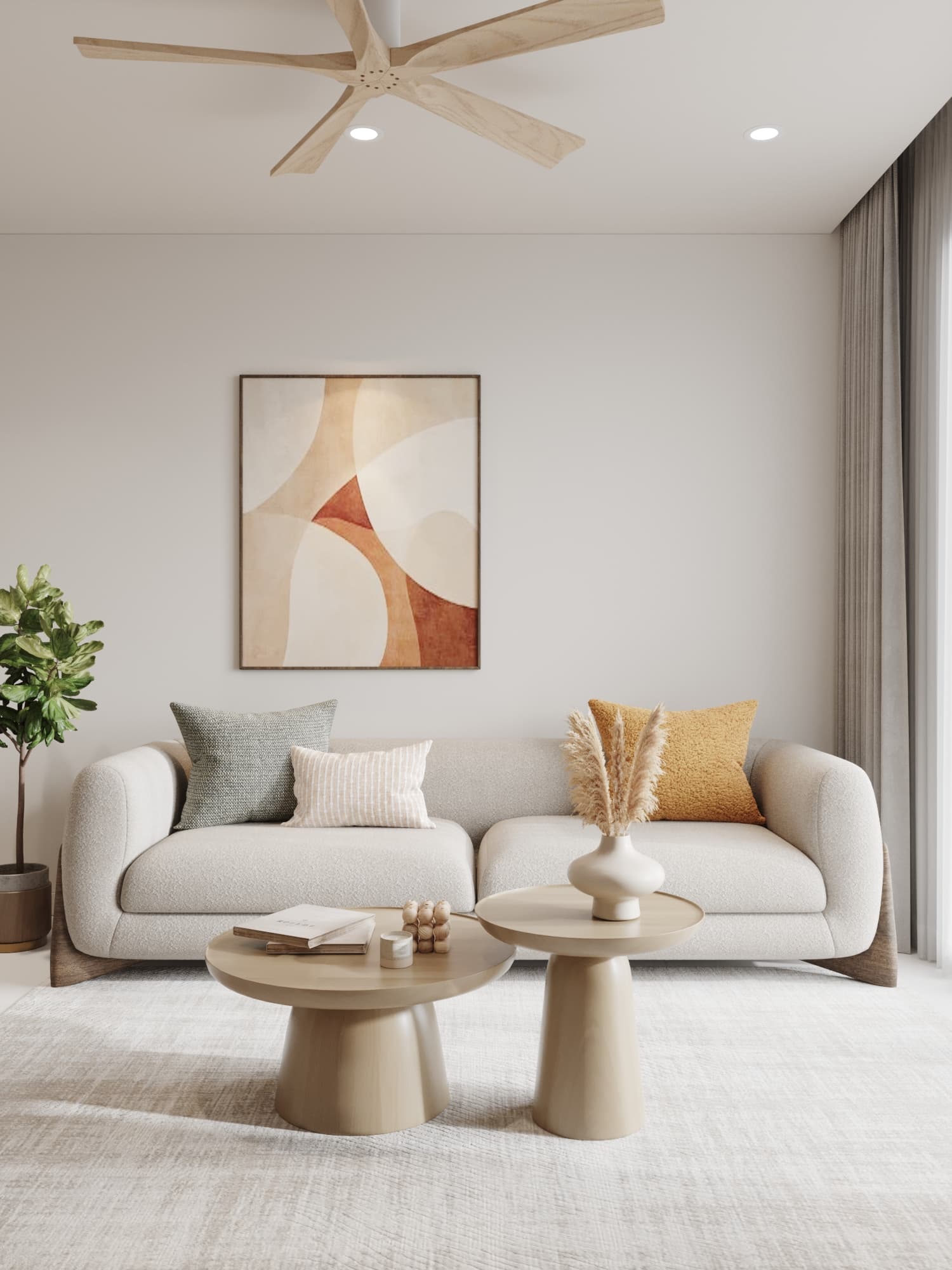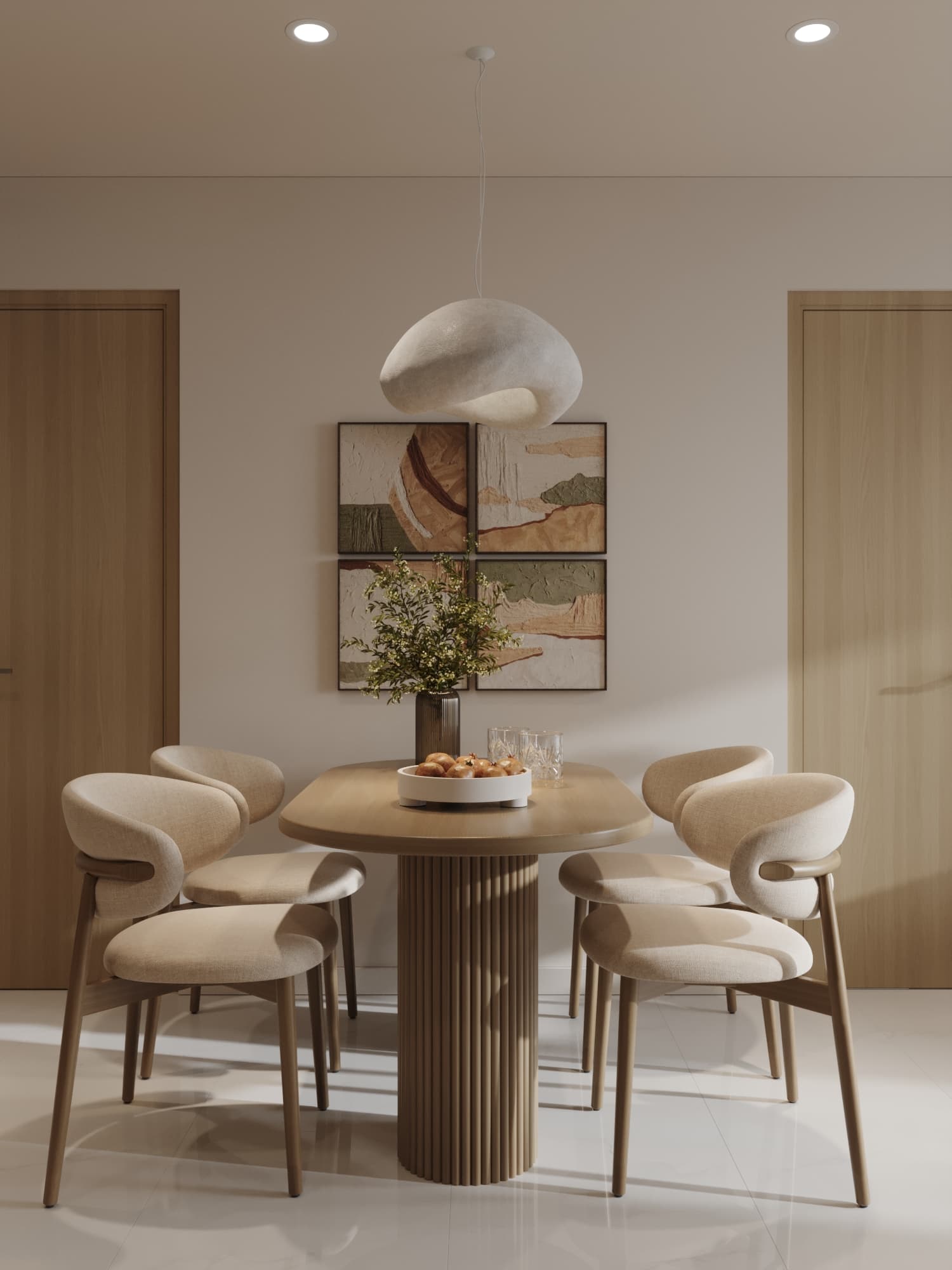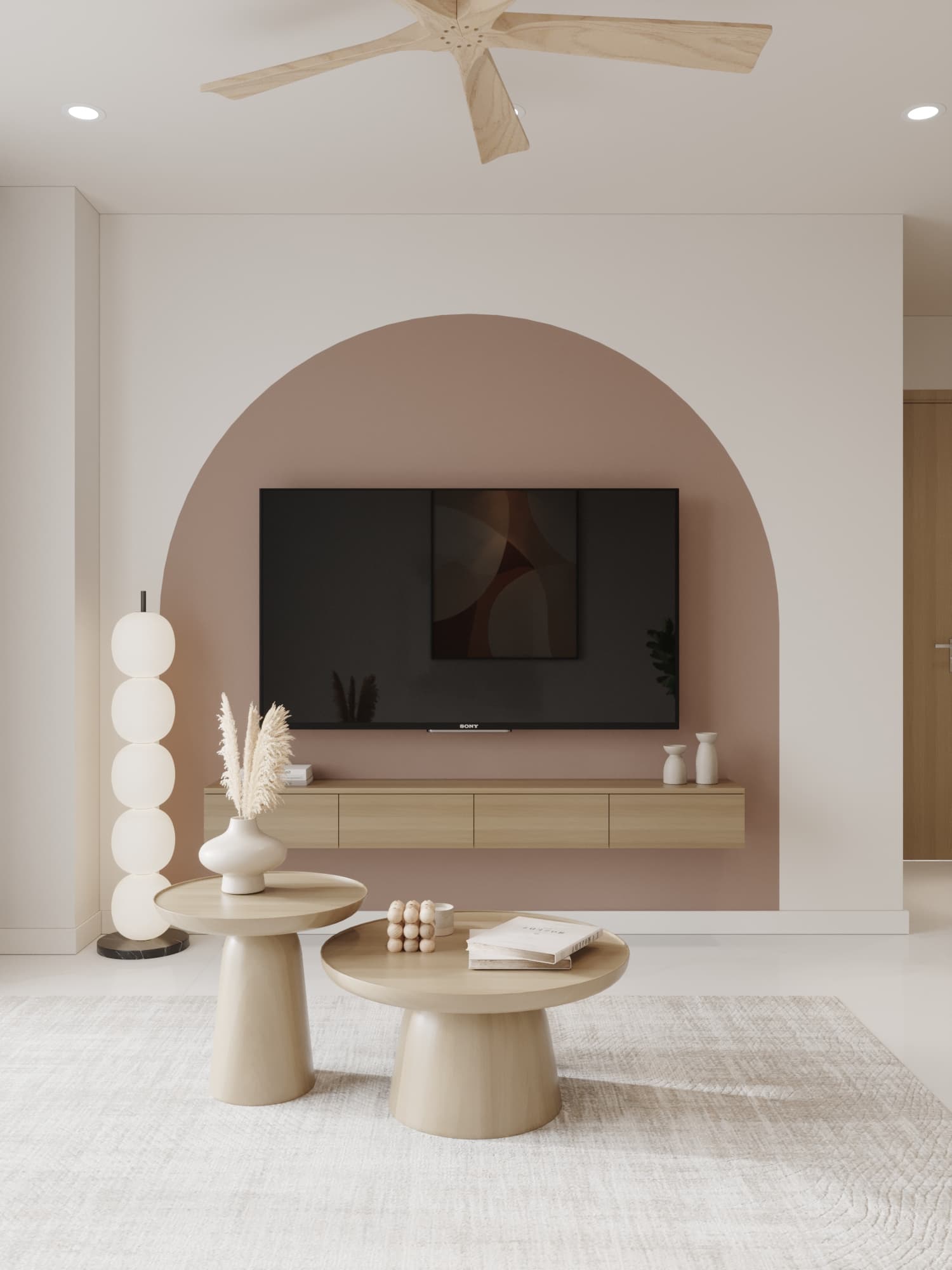 Căn hộ được thiết kế theo phong cách tối giản, nổi bật với gam màu trung tính nhẹ nhàng, đường nét gọn gàng và bố cục hài hòa. Nội thất tinh giản nhưng tiện nghi, kết hợp ánh sáng tự nhiên và vài điểm nhấn trang trí tinh tế, mang lại không gian sống thanh lịch, ấm cúng và thoáng đãng