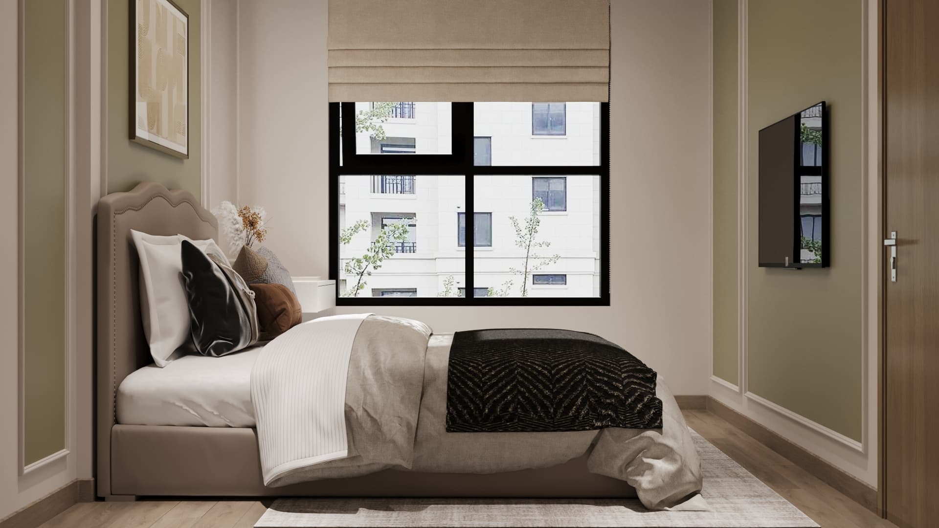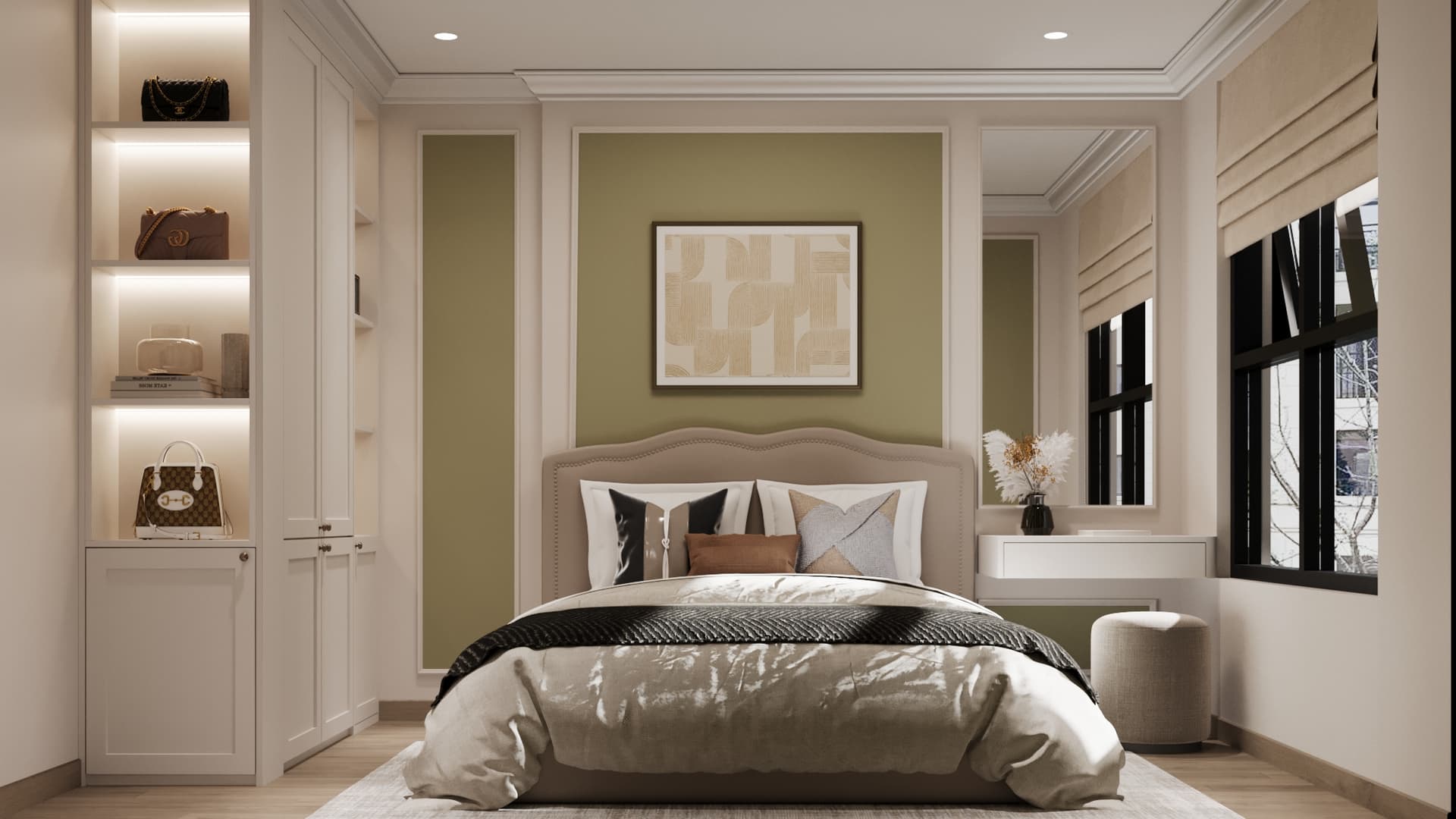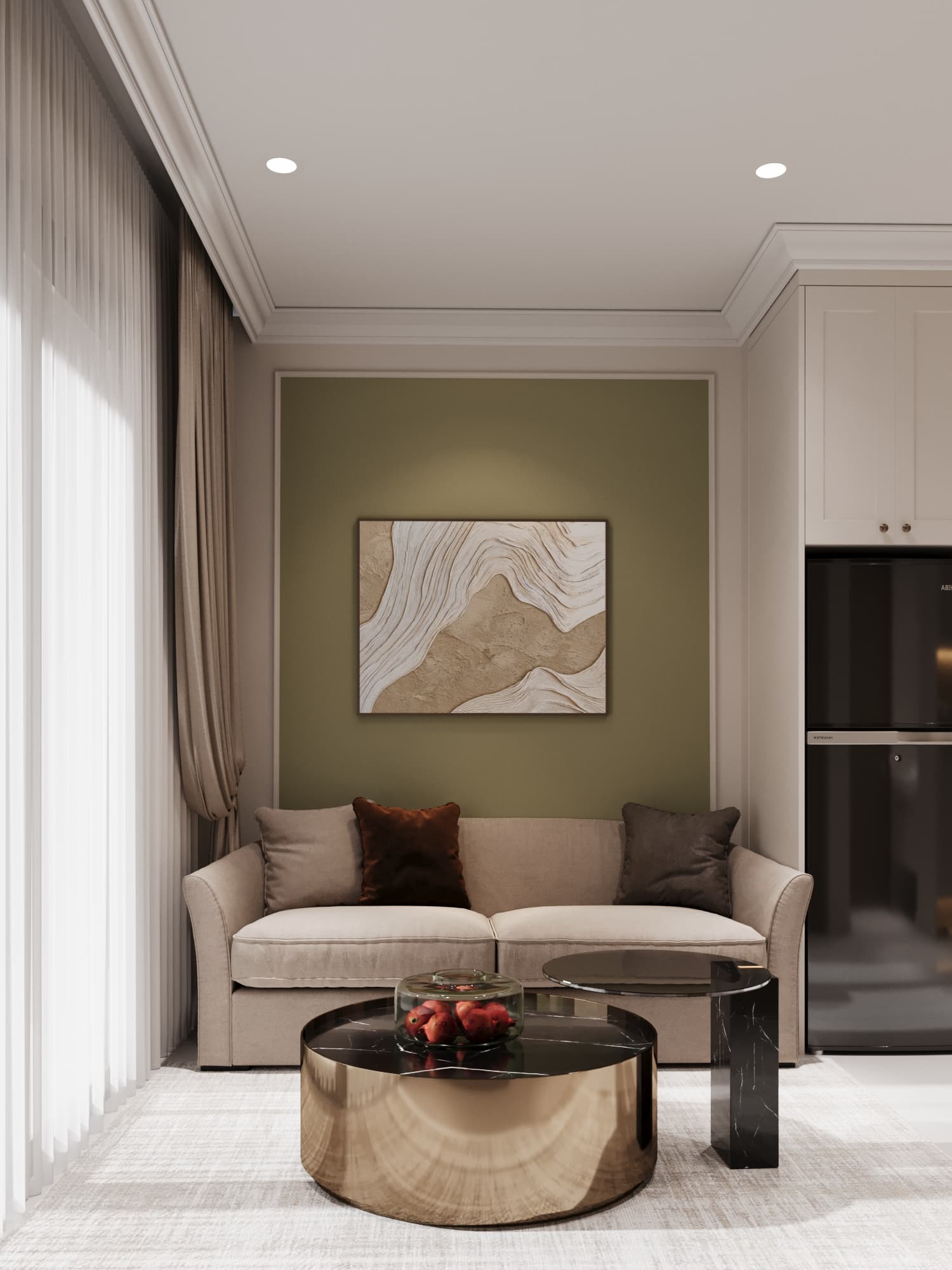 Căn hộ mang phong cách tân cổ điển, nổi bật với gam màu trung tính sang trọng, phào chỉ tinh tế và nội thất hiện đại pha chút cổ điển. Sự kết hợp hài hòa giữa đường nét mềm mại, ánh sáng ấm áp và chất liệu cao cấp tạo nên không gian sống thanh lịch, tinh tế và đầy cuốn hút