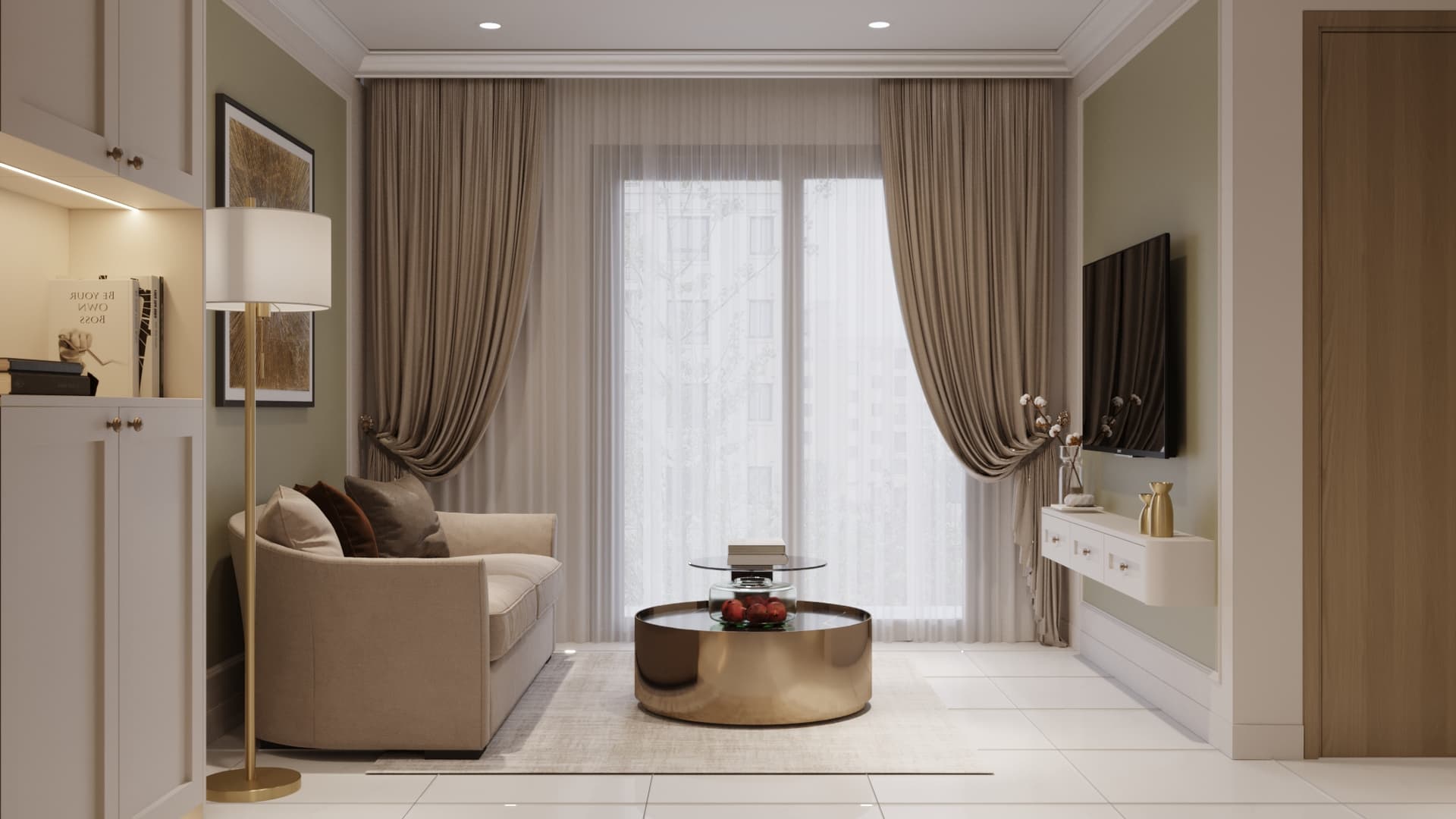 Căn hộ mang phong cách tân cổ điển, nổi bật với gam màu trung tính sang trọng, phào chỉ tinh tế và nội thất hiện đại pha chút cổ điển. Sự kết hợp hài hòa giữa đường nét mềm mại, ánh sáng ấm áp và chất liệu cao cấp tạo nên không gian sống thanh lịch, tinh tế và đầy cuốn hút