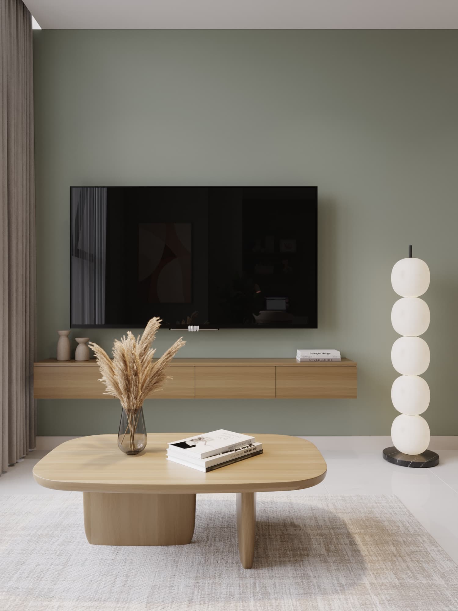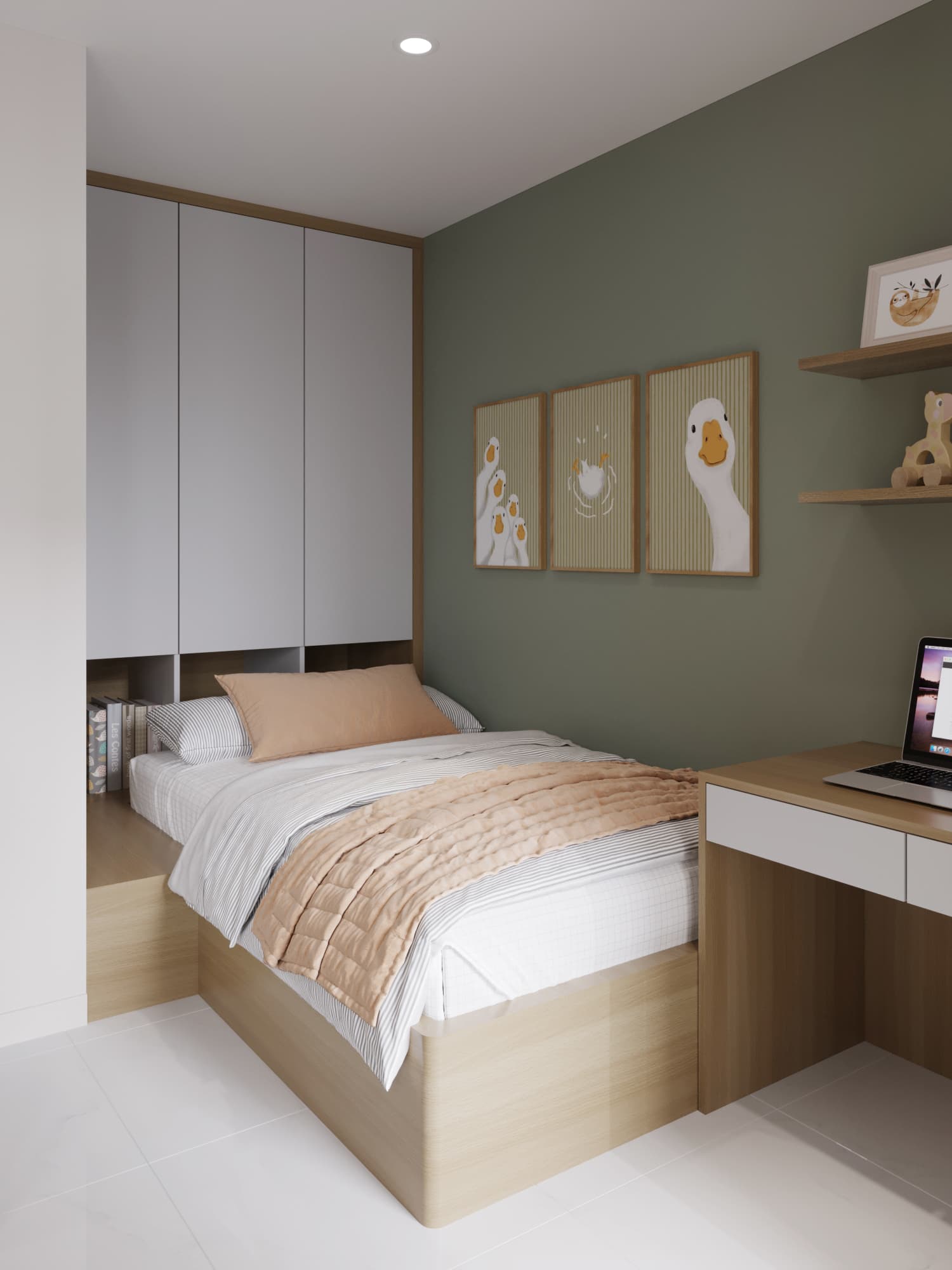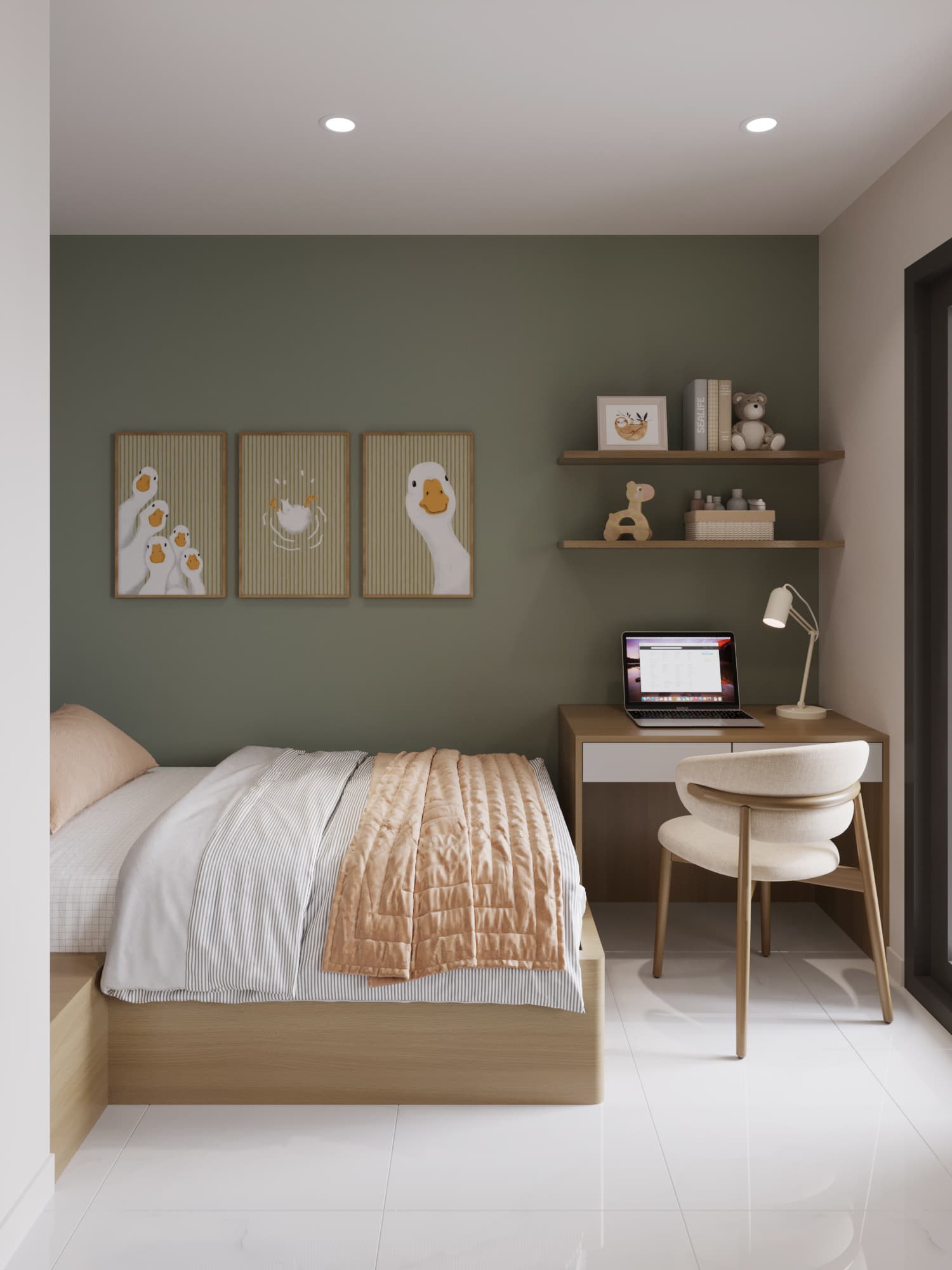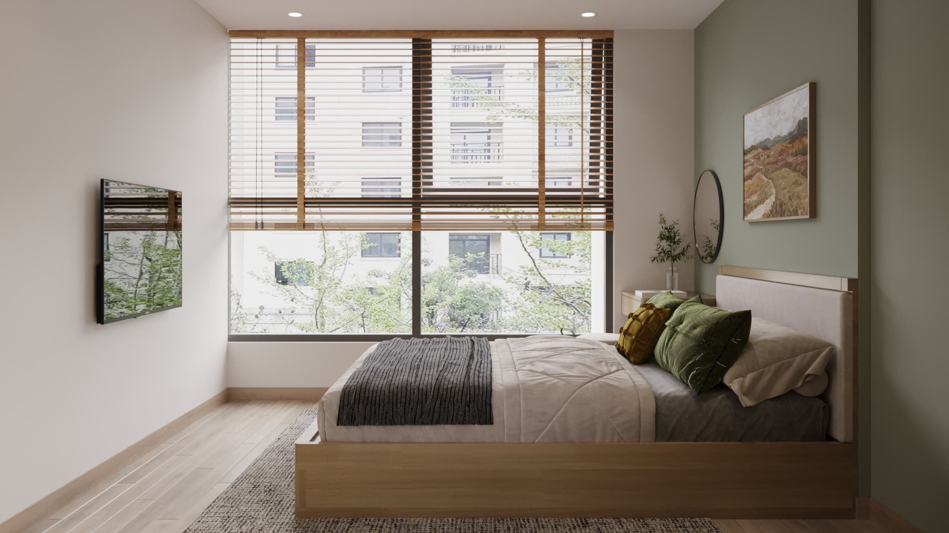 Căn hộ được thiết kế theo phong cách tối giản, nổi bật với gam màu trung tính nhẹ nhàng, đường nét gọn gàng và bố cục hài hòa. Nội thất tinh giản nhưng tiện nghi, kết hợp ánh sáng tự nhiên và vài điểm nhấn trang trí tinh tế, mang lại không gian sống thanh lịch, ấm cúng và thoáng đãng