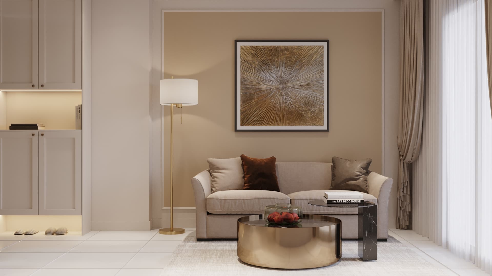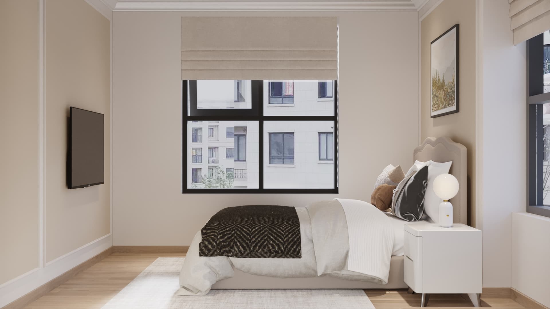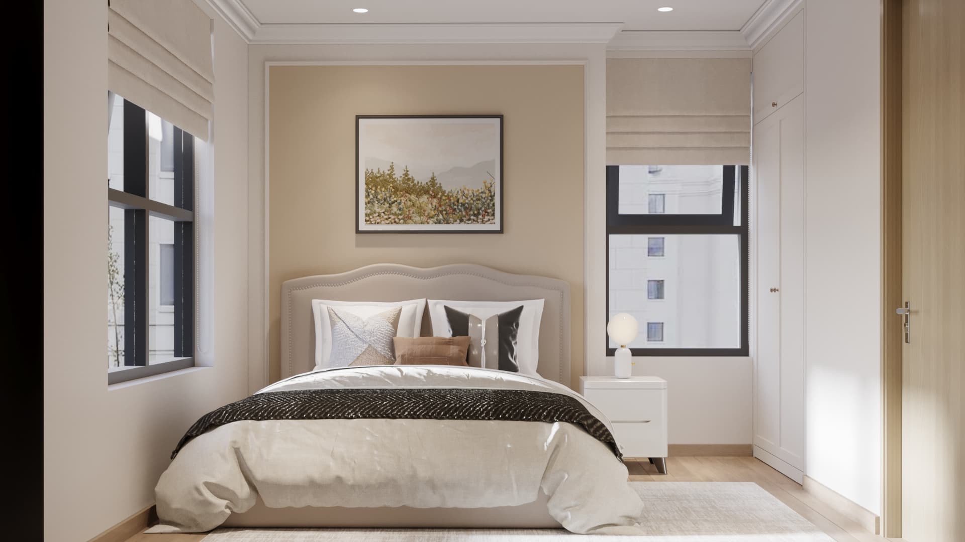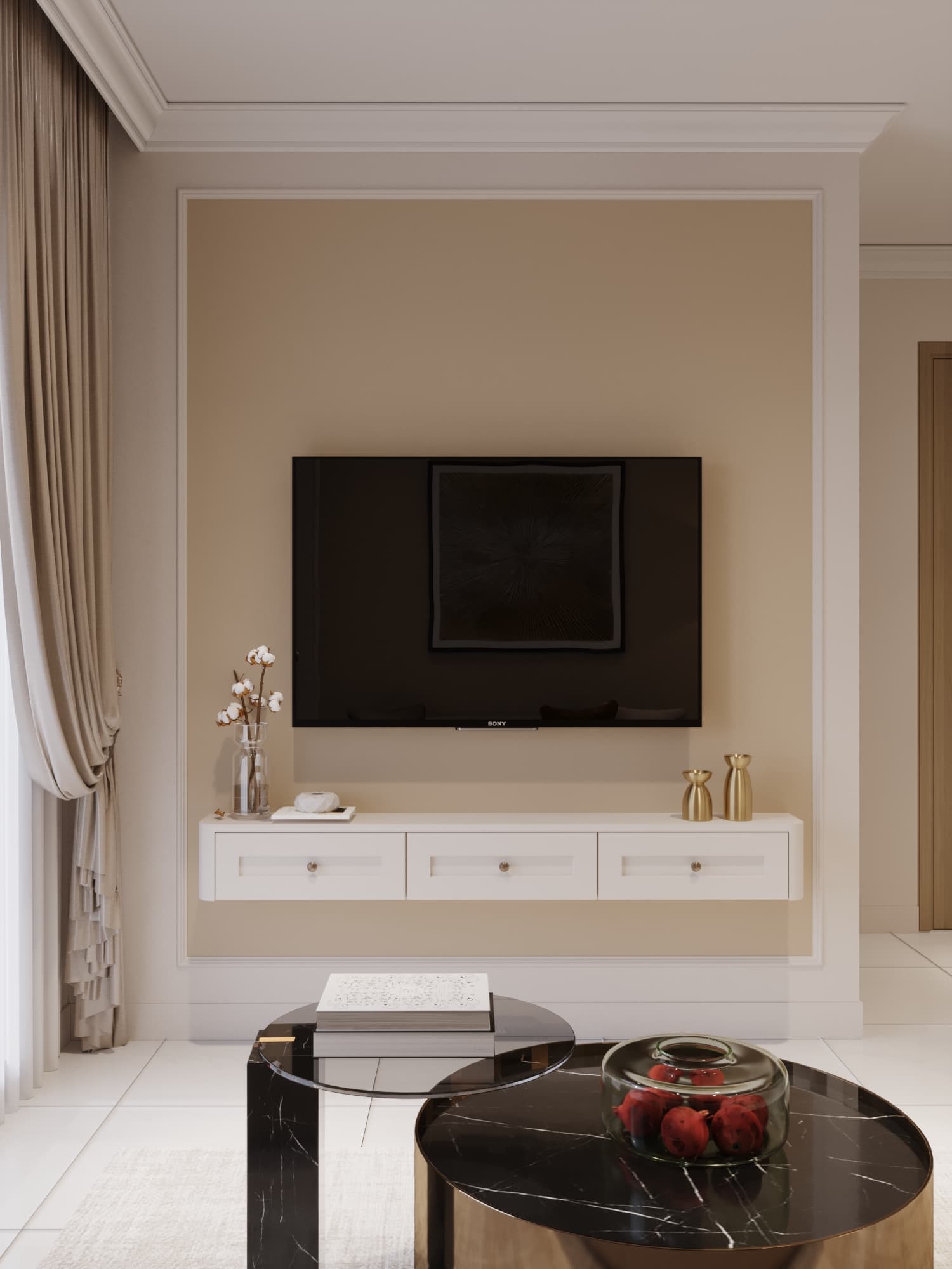 Căn hộ mang phong cách tân cổ điển, nổi bật với gam màu trung tính sang trọng, phào chỉ tinh tế và nội thất hiện đại pha chút cổ điển. Sự kết hợp hài hòa giữa đường nét mềm mại, ánh sáng ấm áp và chất liệu cao cấp tạo nên không gian sống thanh lịch, tinh tế và đầy cuốn hút
