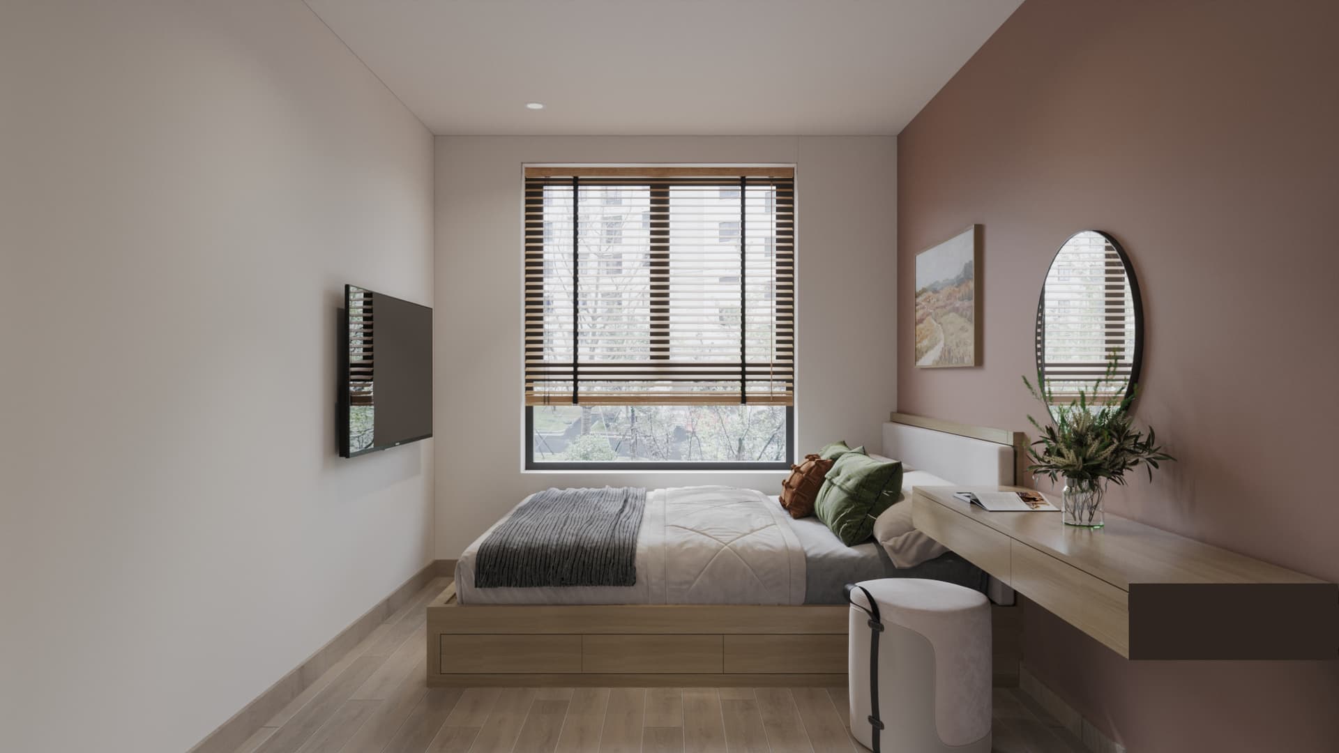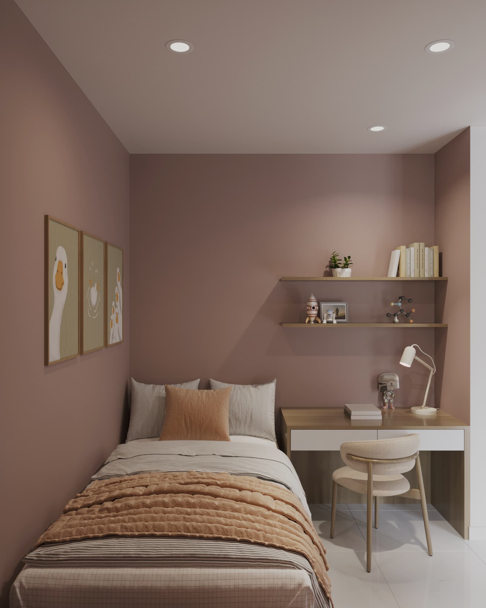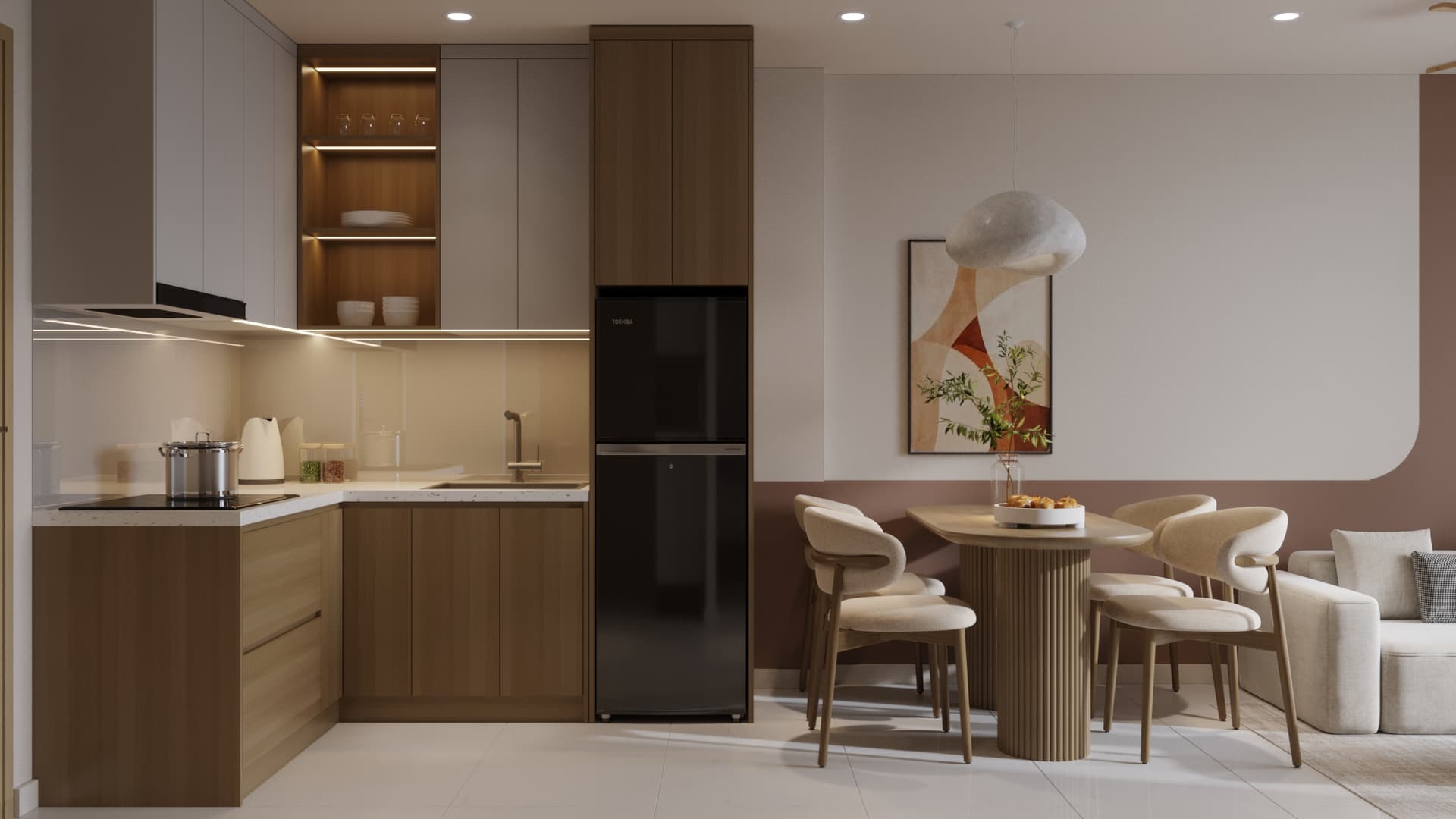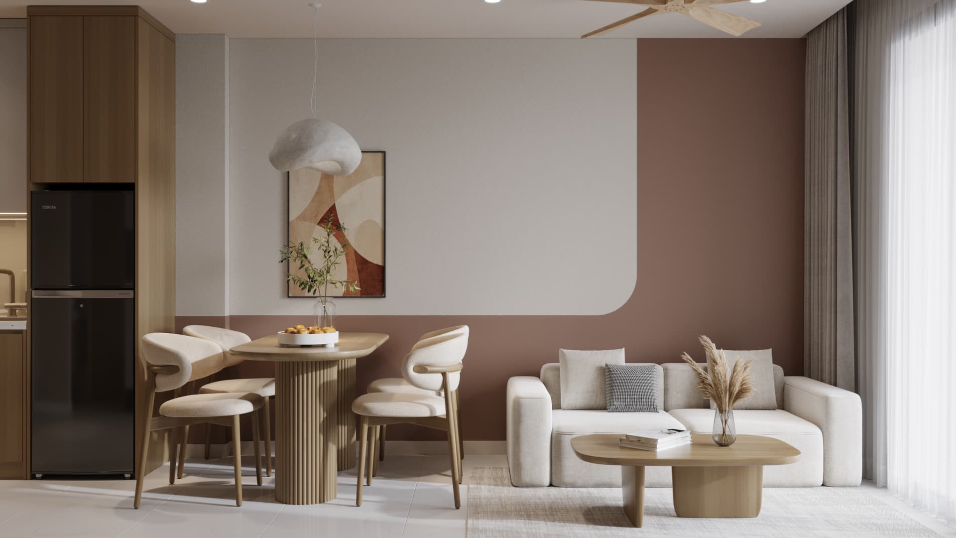 Căn hộ được thiết kế theo phong cách tối giản, nổi bật với gam màu trung tính nhẹ nhàng, đường nét gọn gàng và bố cục hài hòa. Nội thất tinh giản nhưng tiện nghi, kết hợp ánh sáng tự nhiên và vài điểm nhấn trang trí tinh tế, mang lại không gian sống thanh lịch, ấm cúng và thoáng đãng