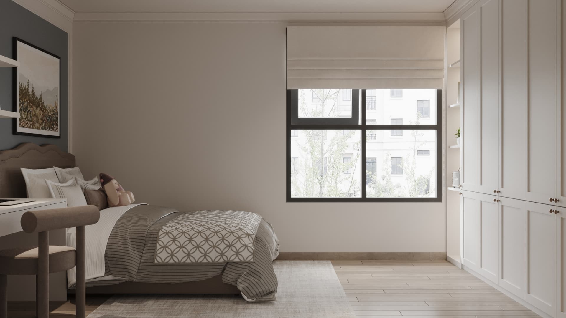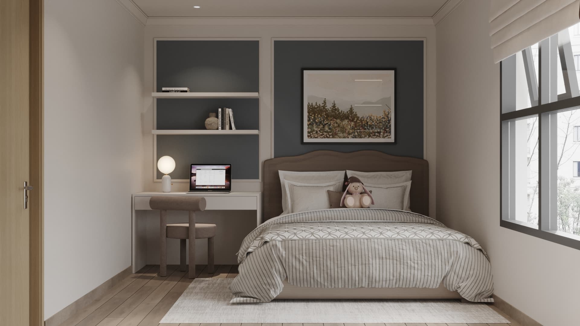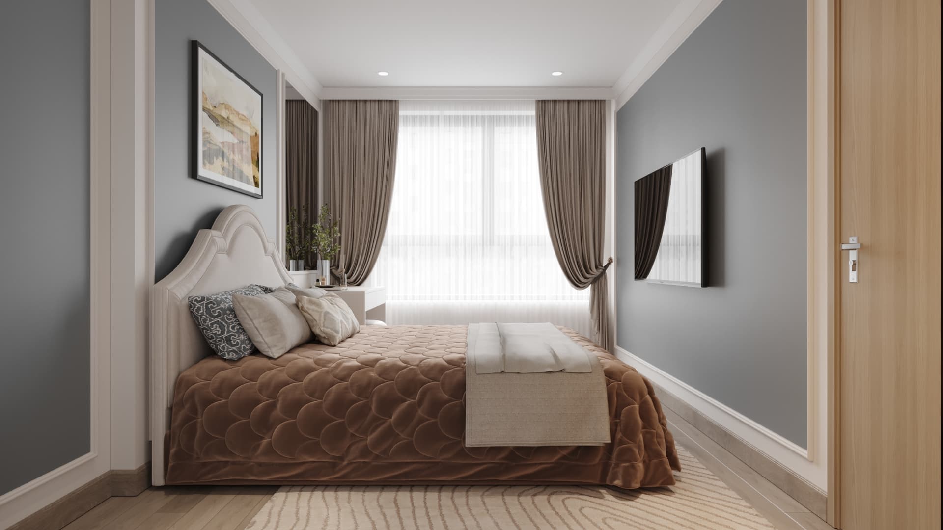Căn hộ mang phong cách tân cổ điển, nổi bật với gam màu trung tính sang trọng, phào chỉ tinh tế và nội thất hiện đại pha chút cổ điển. Sự kết hợp hài hòa giữa đường nét mềm mại, ánh sáng ấm áp và chất liệu cao cấp tạo nên không gian sống thanh lịch, tinh tế và đầy cuốn hút